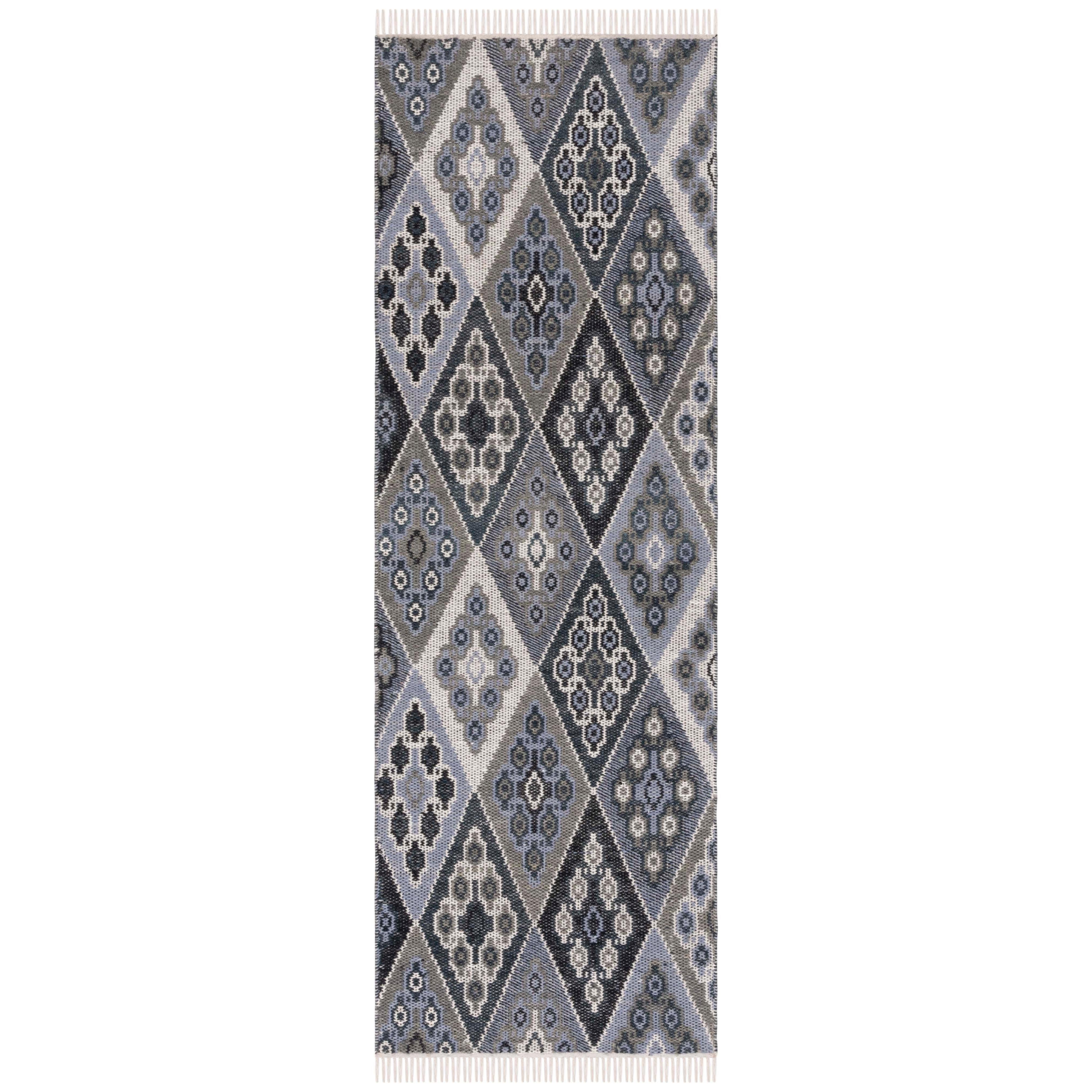 Kilim KLM726Z rug by SAFAVIEH, a stunning addition to any space. Handmade with care in the rich traditions of nomadic communities across the Middle East and Central Asia, these bohemian flat weave area rugs bring a touch of artistry to your home decor. The tribal-inspired patterns and vibrant colors of the Kilim collection make for a captivating focal point in any room, adding an exotic flair to your surroundings with a thickness of approximately 0.25 inches.