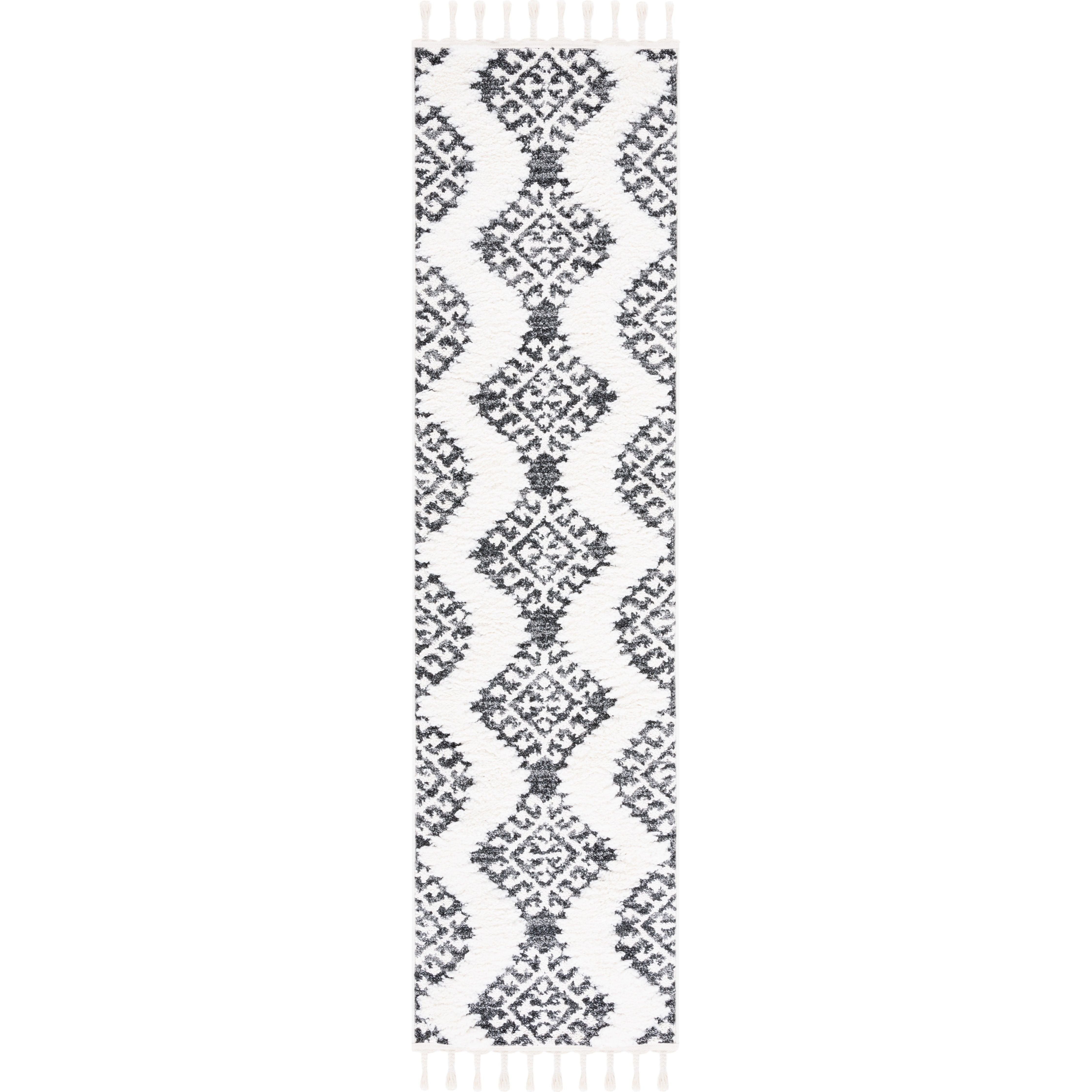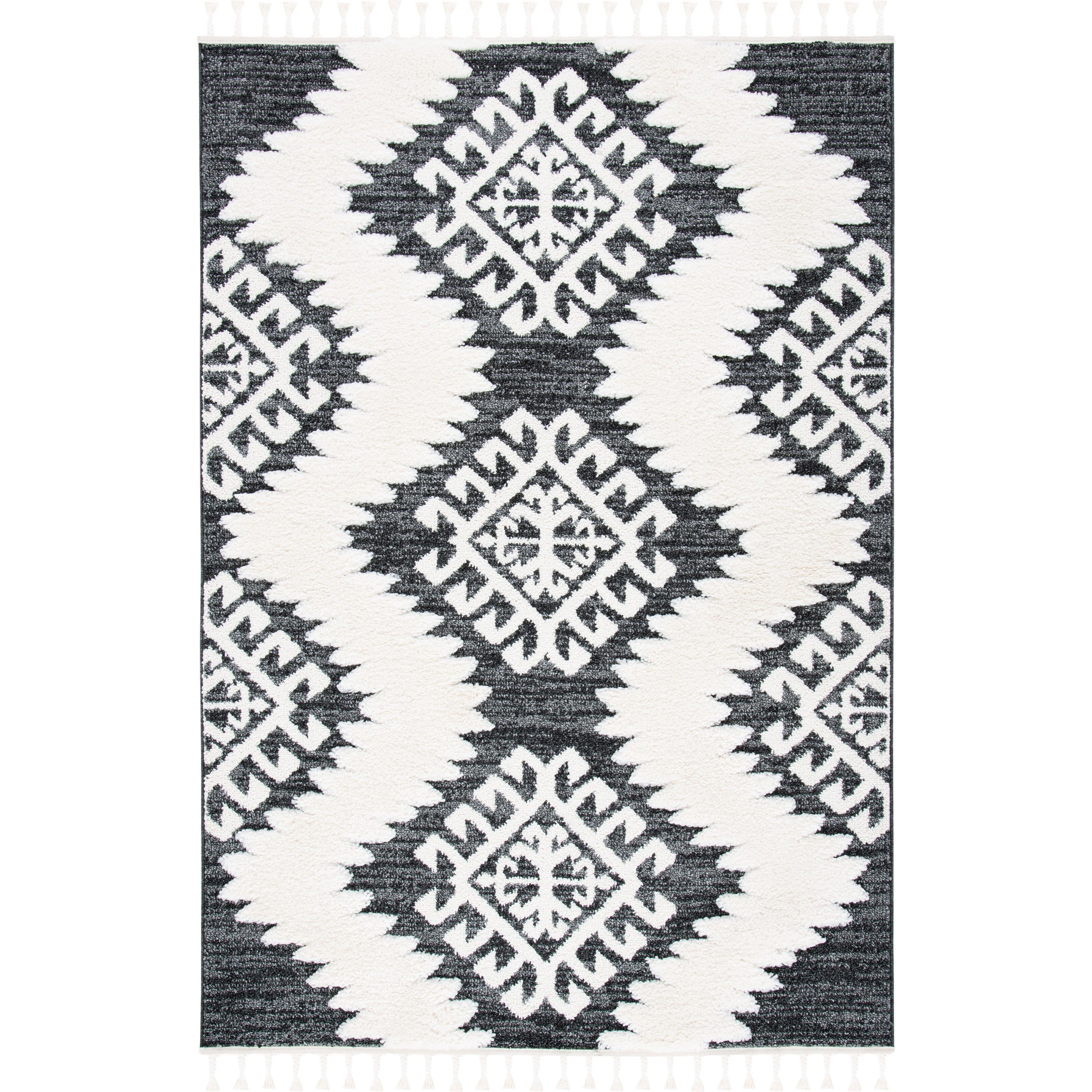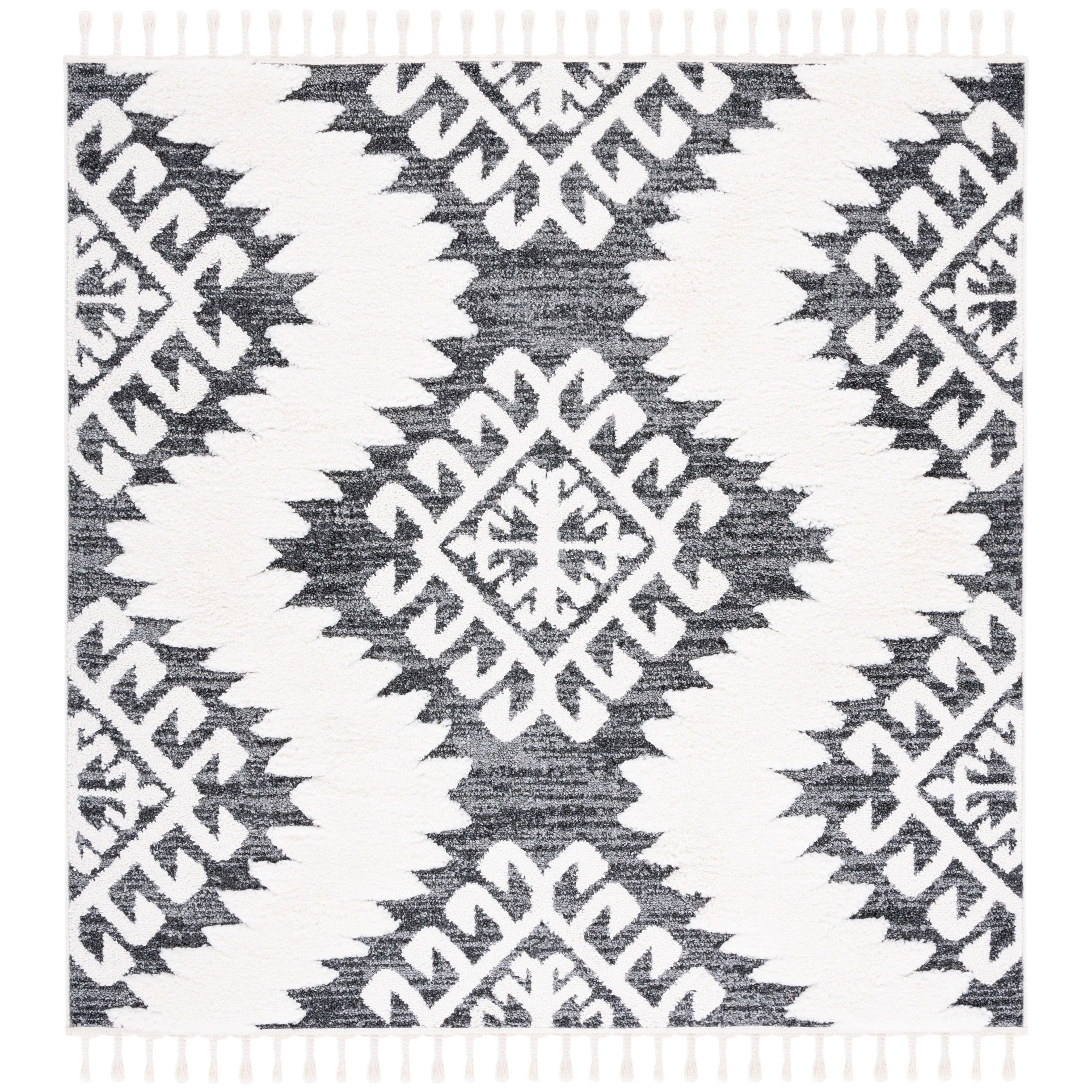 Elevate your space with the enchanting Moroccan Tassel Shag MTS652H rug from SAFAVIEH. Inspired by Old World charm and nomadic motifs, these thick shag rugs feature captivating diamond designs and lush textures that bring rustic-chic style to any room. The braided fringe detail adds a whimsical touch, making it a must-have floor covering for those seeking a touch of elegance.