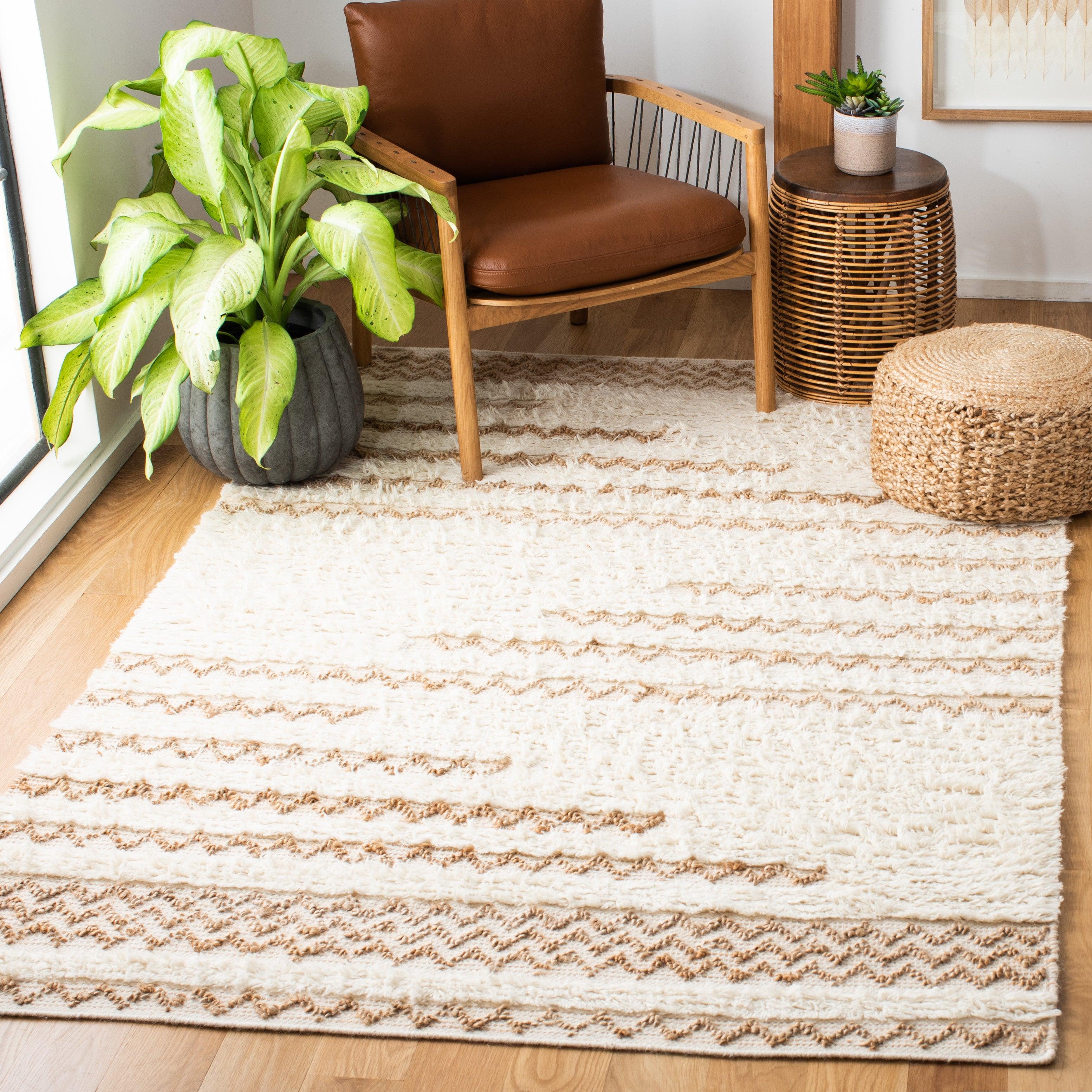 Natura NAT720A from the Natura Collection, a stunning embodiment of elegant beach house style. Hand-tufted with soft, lustrous yarns, this rug features a mix of oversized loops and flat surfaces that create a visually appealing texture. The collection boasts a variety of braided motifs, twills, and boucle effects that add depth and character to any space. With an approximate thickness of 0.5 inches, this rug is both luxurious and comfortable underfoot.