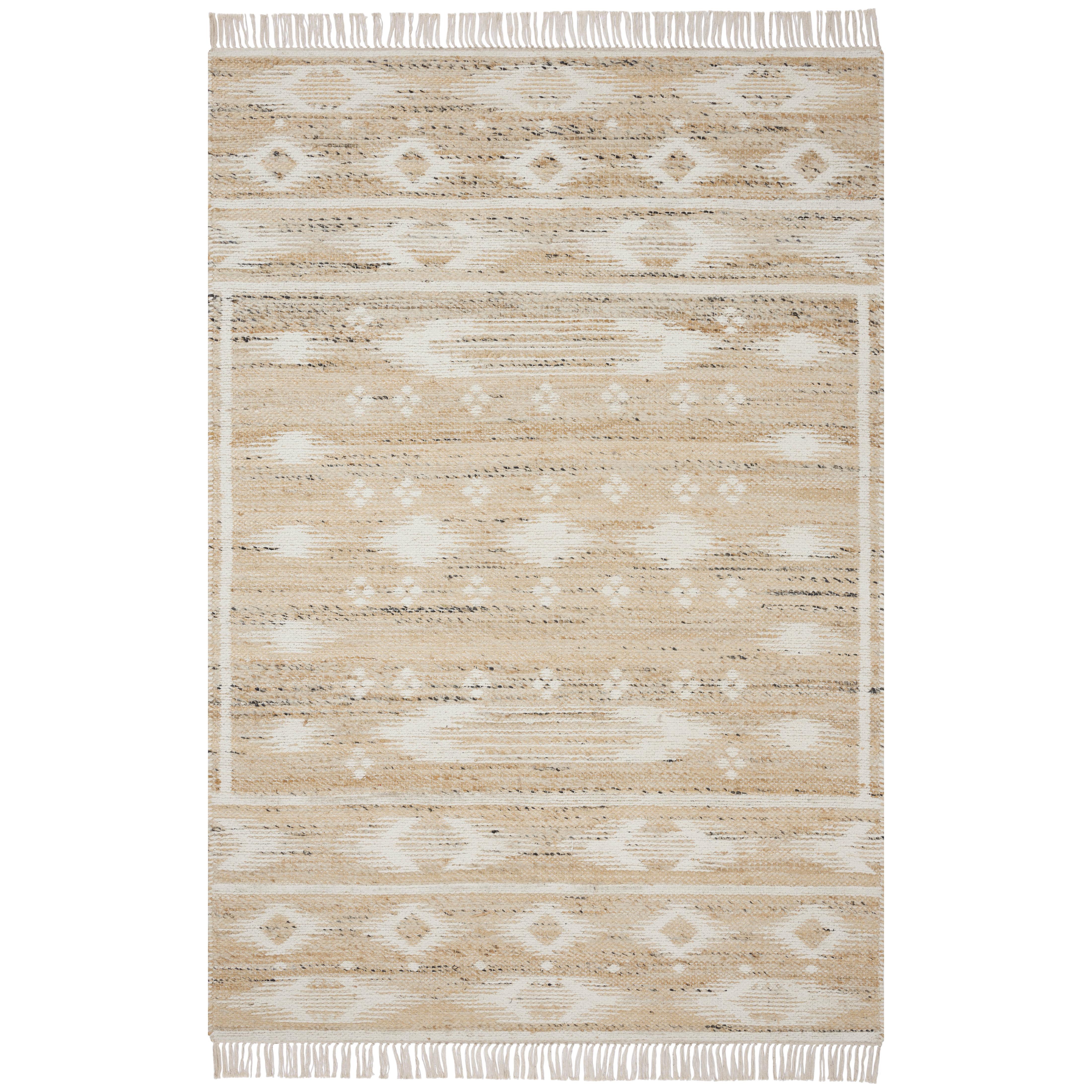 Rivers Riv 04 Natural Ivory area rug from the stylish Rivers Collection by Angela Rose x Loloi. This modern flatweave rug boasts a reversible design adorned with symmetrical motifs, perfect for adding a contemporary touch to your space.