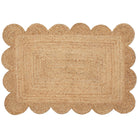 Java Scalloped Edge Natural area rug, a stunning addition to any room in your home. Handwoven with a unique braided flatweave design, this rug boasts solid neutral tones and a subtle geometric pattern with a scalloped border trim for a classic aesthetic. Crafted in India as part of the Java Collection, this rug is made from 100% natural jute fibers, promoting eco-friendly living.