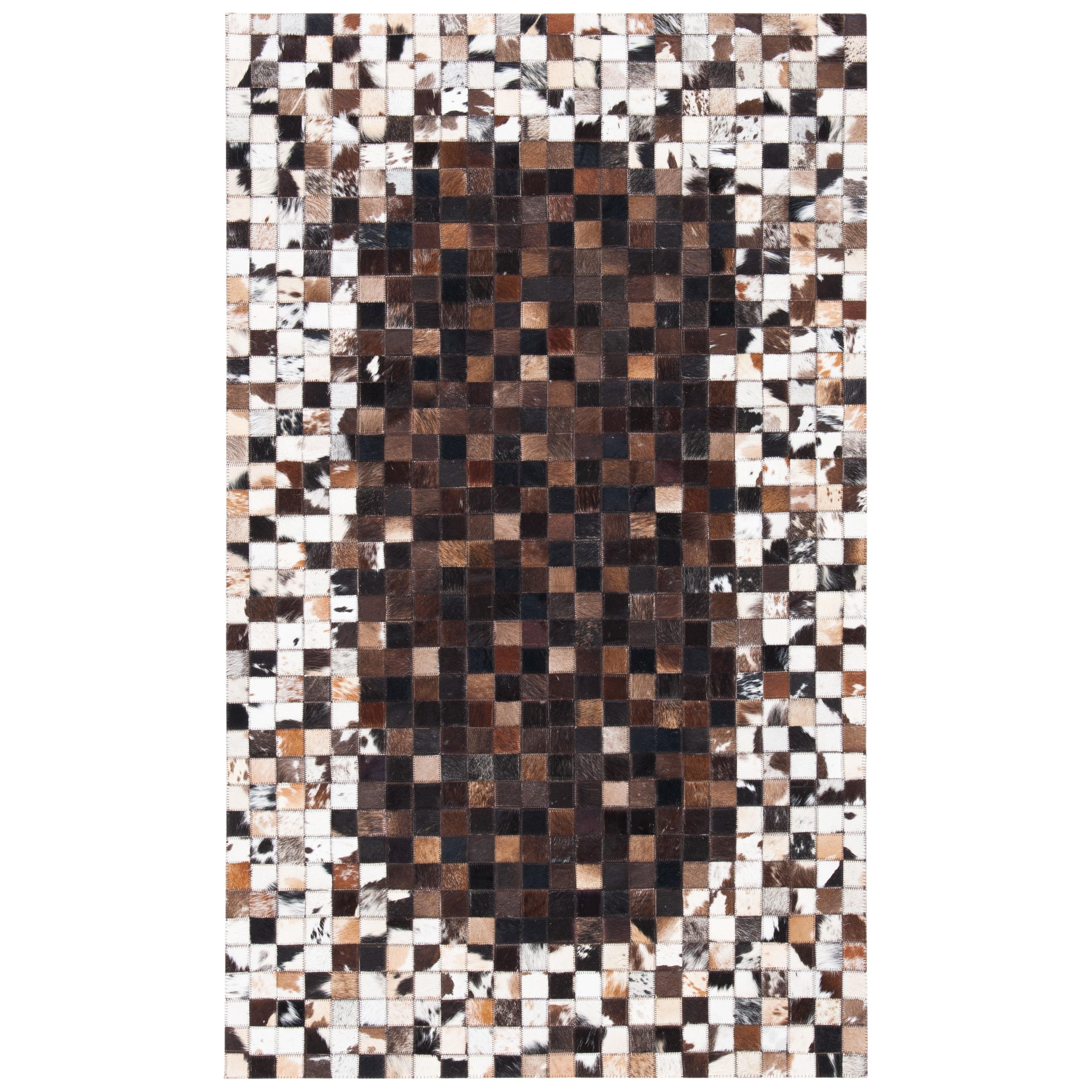 Studio Leather STL803B rug by SAFAVIEH - a chic and tactile addition to any space. Made with premium cowhides and leather, these rugs showcase a variety of designs, from classic patchwork to modern geometric cutouts. Each rug is meticulously hand-stitched, resulting in unique contemporary artworks available in natural tones and vibrant colors.