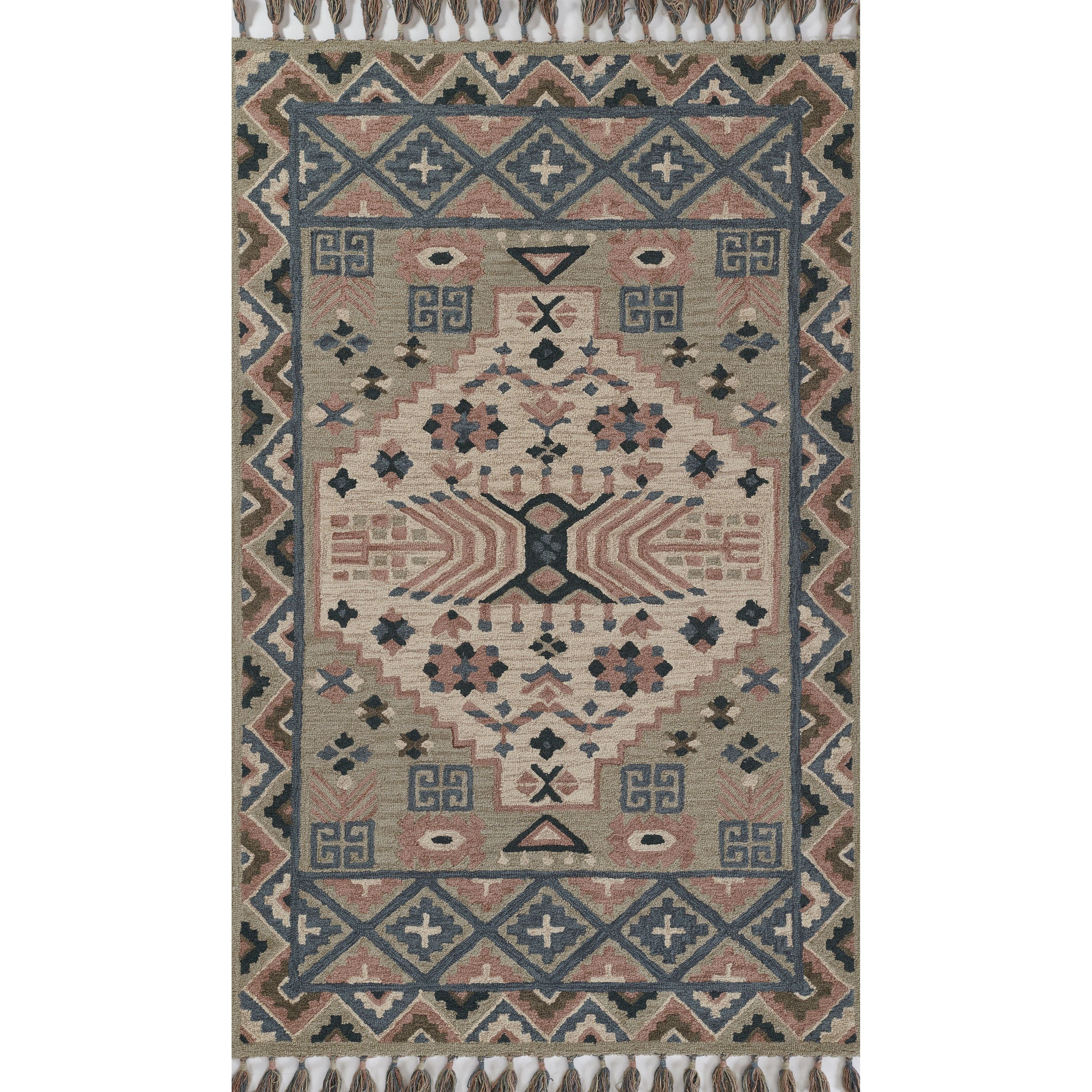 Tahoe Ta 50 Grey area rug, a fusion of Southwestern motifs with a contemporary twist. This collection showcases a variety of tribal patterns, each featuring unique geometric repeats inspired by traditional tribal designs. From diamonds and crosses to medallions and stars, these patterns create visually striking stripes and intricate linework throughout the rug.