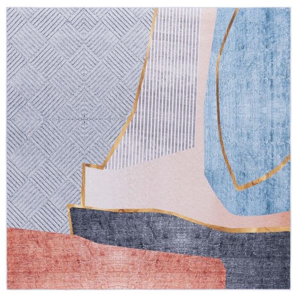 Washable Printed Rug WPR322K Turquoise / Red