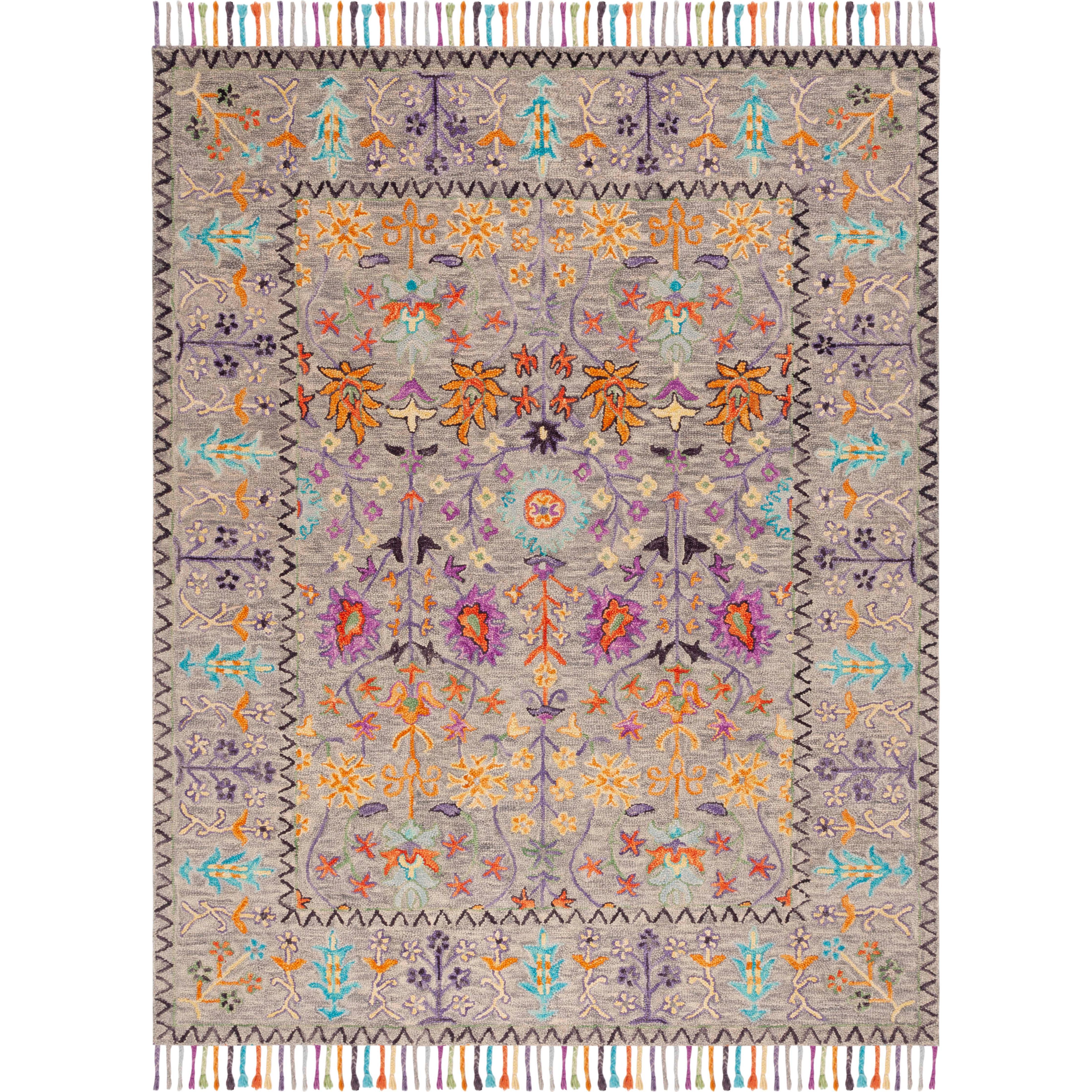 Blossom BLM453A Grey Multi rug from the exquisite Blossom Collection. These rugs offer a modern twist on classic hooked designs, featuring large hand woven loops that add texture and charm to any country casual setting. Crafted from 100% premium wool, Blossom area rugs beautifully blend traditional English chintz and block print motifs with a contemporary aesthetic, making them perfect for today's stylish homes. With an approximate thickness of 0.5 inches, this rug adds warmth and comfort to your space.