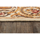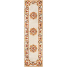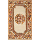 Harmony 2 HAI12 Ivory area rug, a stunning addition to any home with its antique-style embellishments. This traditional rug comes in a variety of royal shades including sage green, soft blue, ivory, rose, and burgundy red. The ornate gold scrolls and scallops on this decorative floor covering evoke the gilded grandeur of French baroque design.