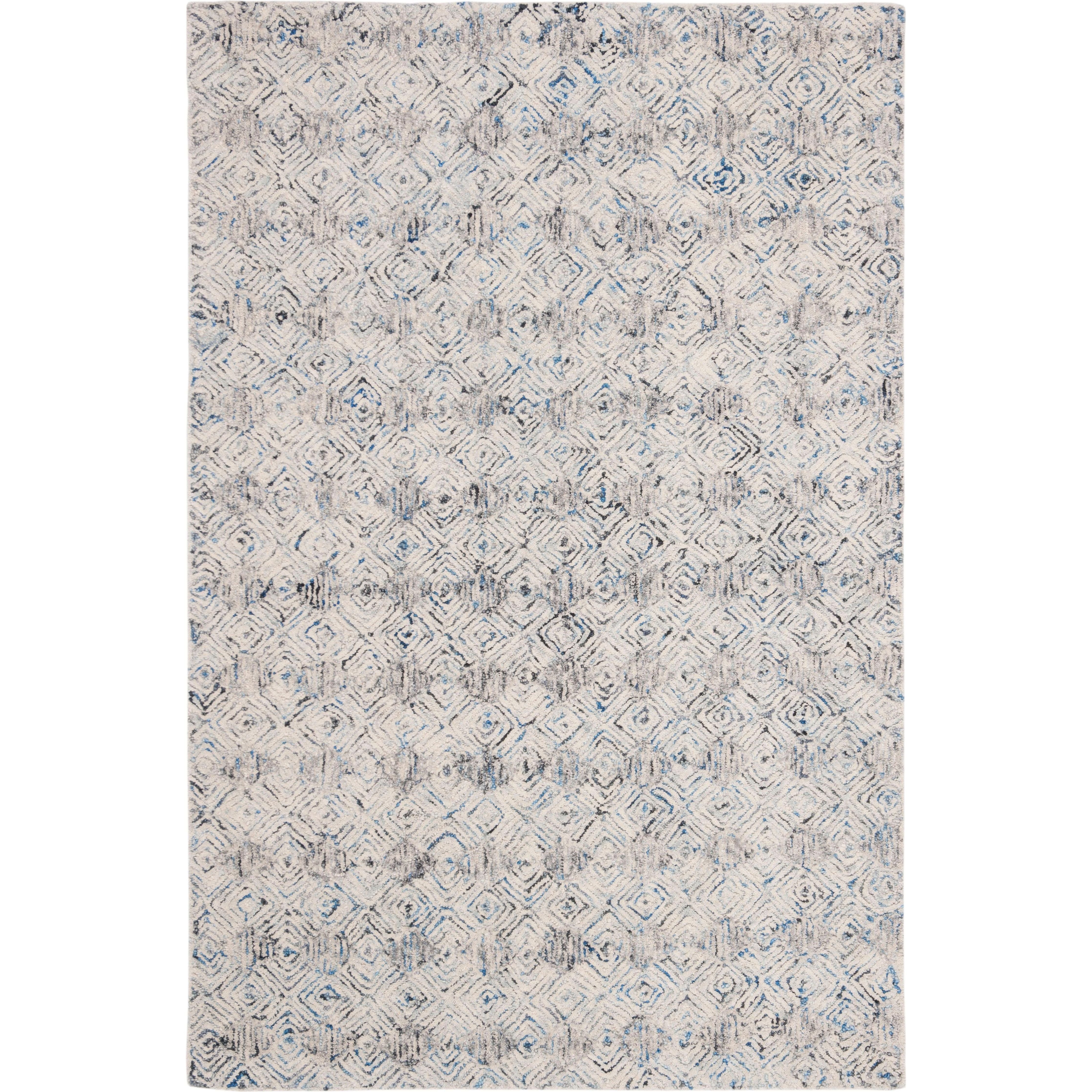 exquisite Renaissance REN629A Blue Ivory rug from Safavieh's renowned collection. Handmade with intricate geometric patterns, this rug showcases superior craftsmanship. The delightful blend of blue, ivory, and grey hues brings a touch of elegance to any room. Crafted from premium wool, these rugs are hand-tufted to ensure impeccable design and vibrant colors. Ideal for the bedroom, living room, home office, or dining room, this rug effortlessly adds a modern twist to your decor.