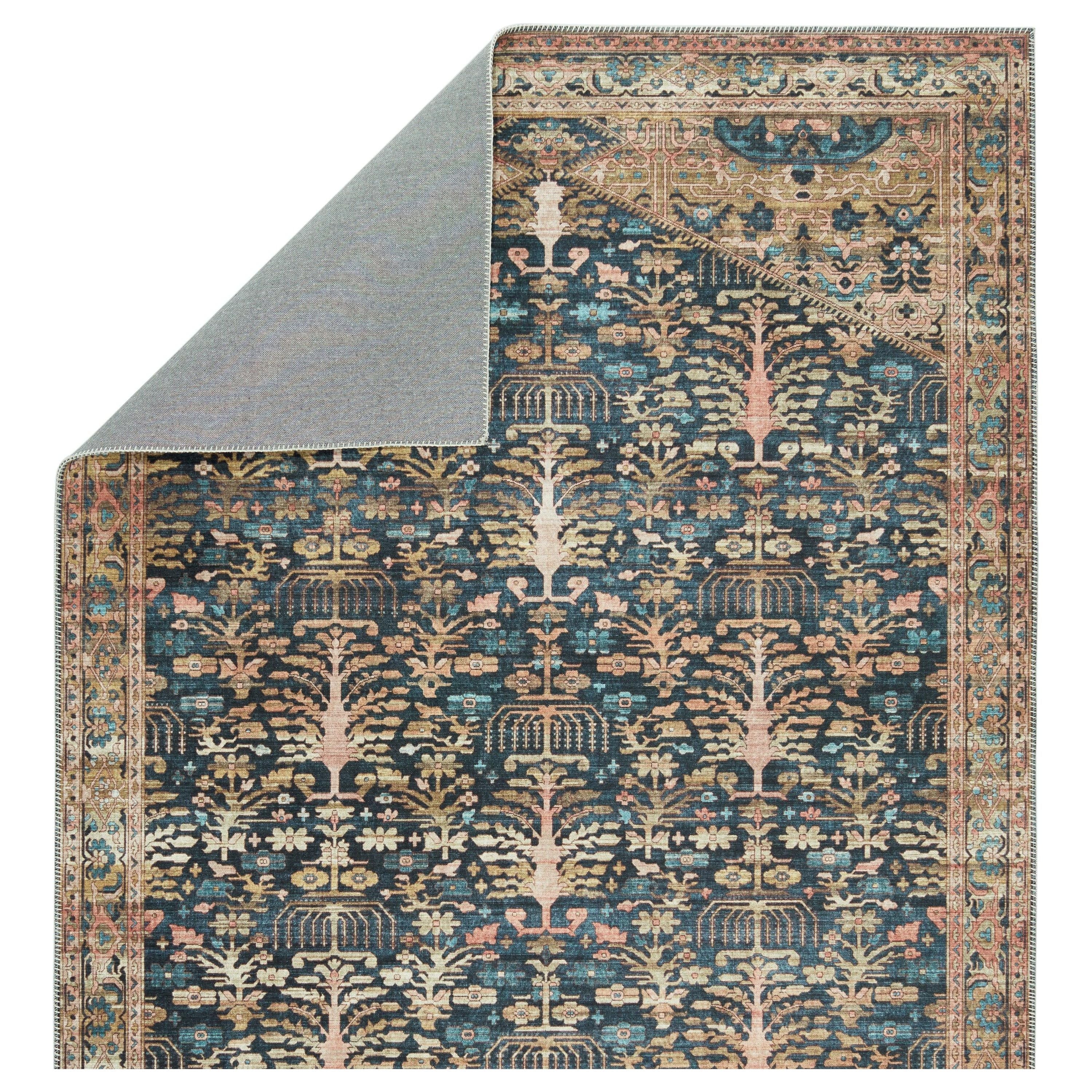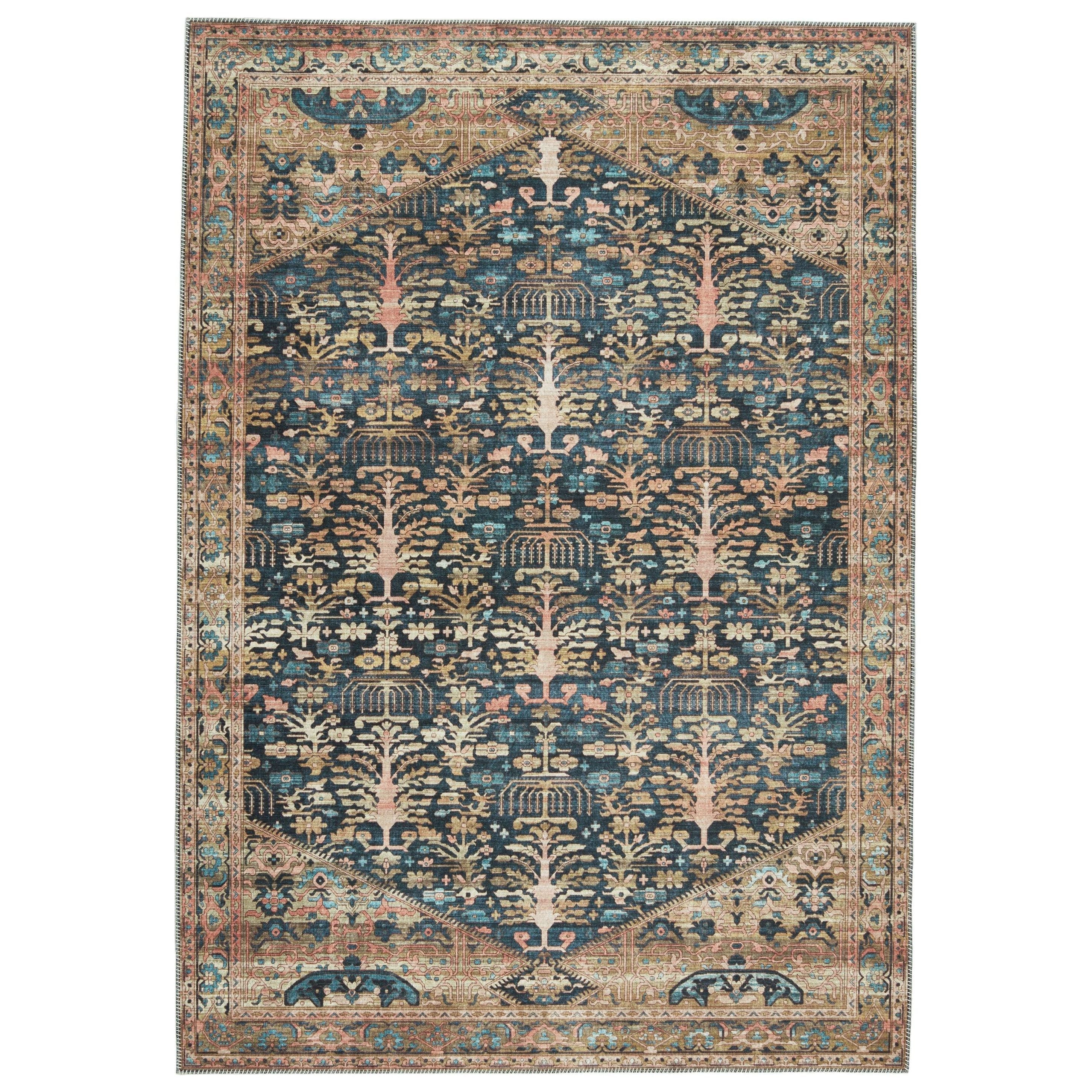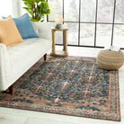 exquisite Keyara By Nikki Chu KNC04 Jayven rug from the beloved Keyara collection by renowned designer Nikki Chu. Blending vintage charm with a modern global flair, this rug is a true statement piece for any space. The Jayven rug boasts a stunning floral motif in rich hues of deep blue, tan, gold, and pink, accented by intricate borders for added elegance.