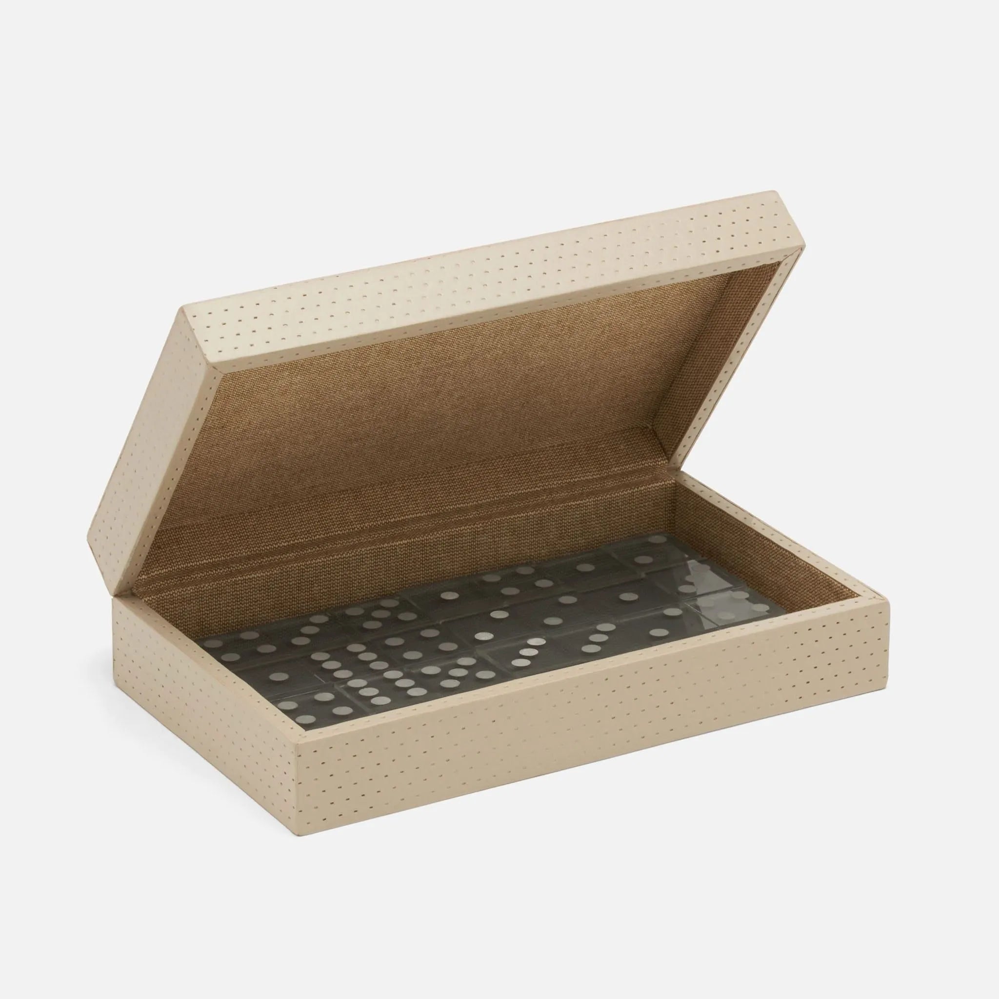 Perforated leather domino set to inspire playtime for all generations. Available in standard and oversized.
