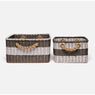 Nautical square basket set with natural rope handles.