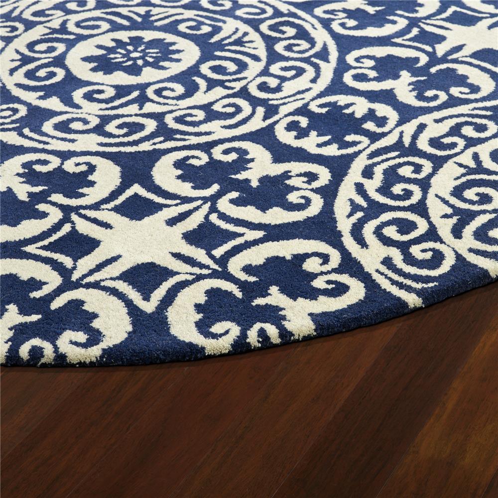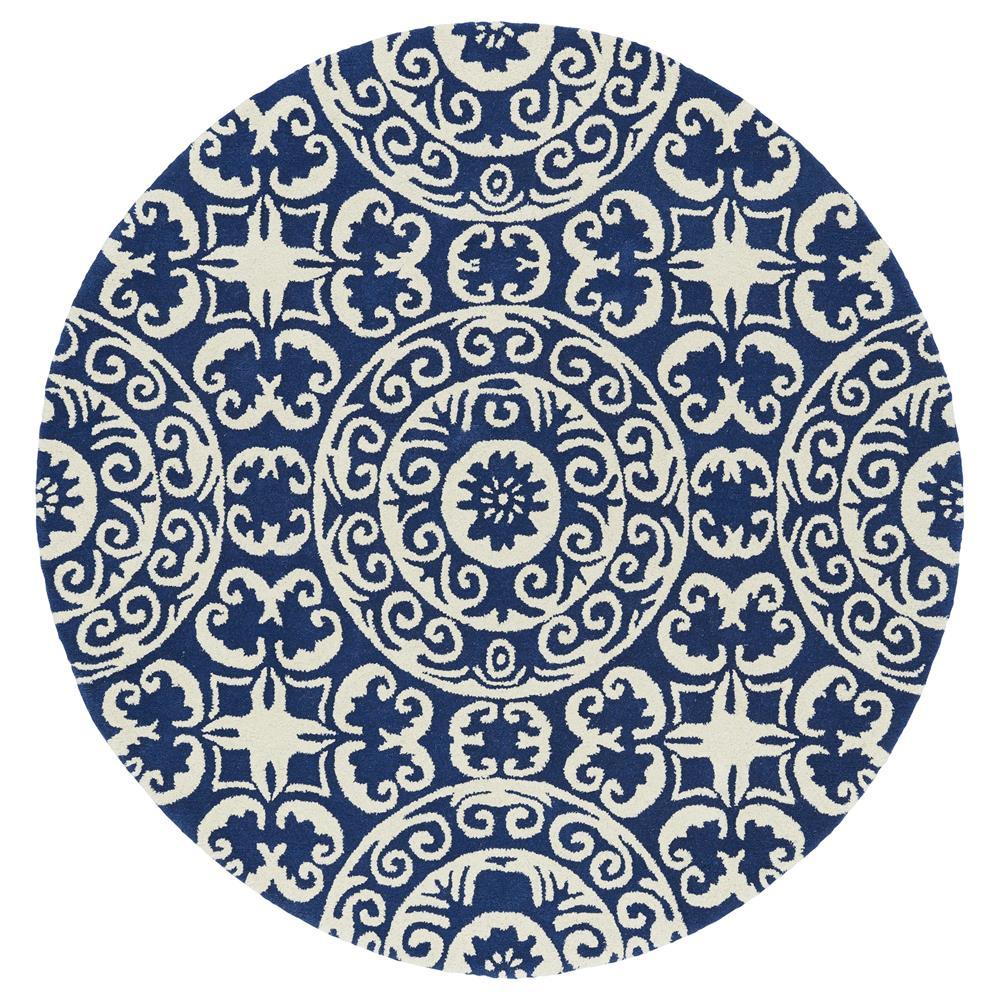 Tara Rounds EVL03 22 Navy rug from the Tara Rounds Collection - a harmonious blend of sophisticated design and classic round shape. Elevate any room with its timeless appeal and versatile functionality. Hand-tufted in India by skilled artisans, these rugs are crafted from premium 100% imported wool for exceptional quality. The traditional circular design exudes a cozy yet elegant vibe, perfect for infusing your space with enduring style.
