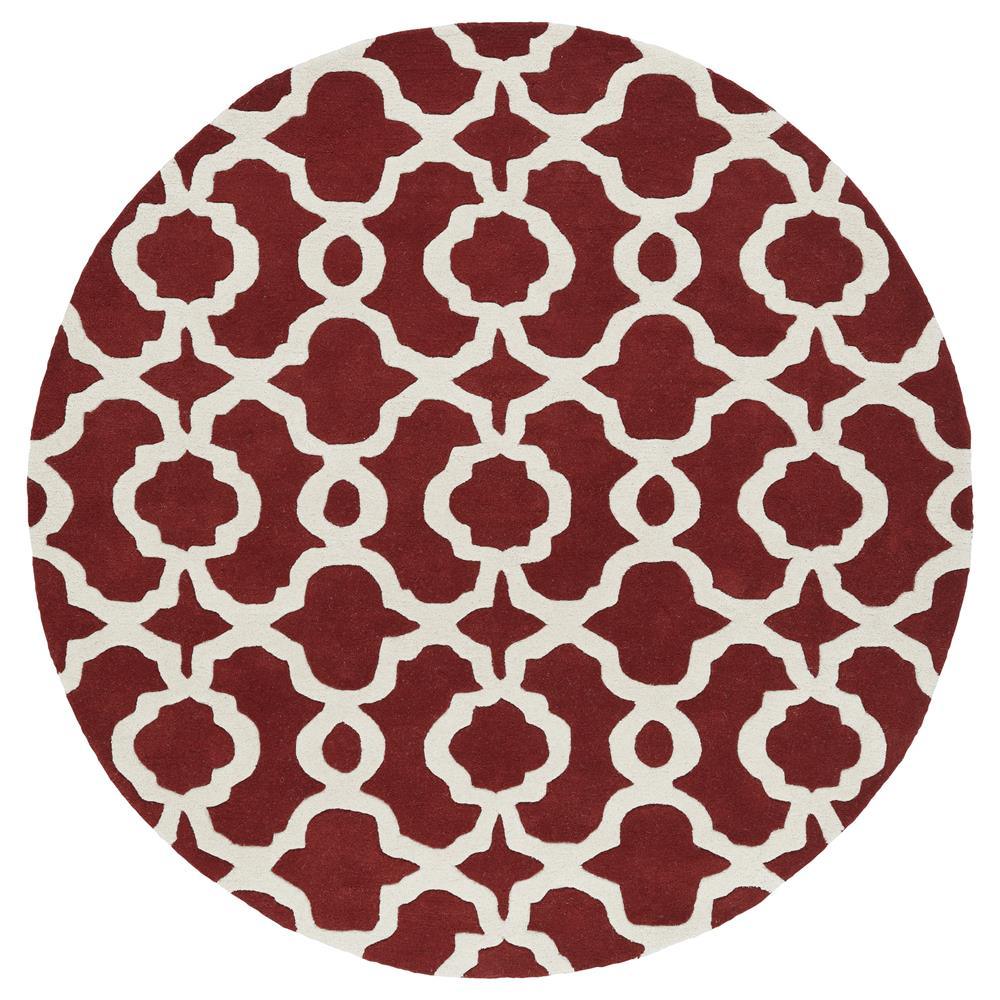 Tara Rounds REV03 25 Red from the Tara Rounds Collection. This rug embodies elegant design with a timeless round shape that adds warmth and charm to any room. Hand-tufted in India by skilled artisans, each rug is crafted from premium 100% imported wool for exceptional quality.