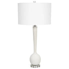 This Elegant Table Lamp Is Executed In A Rich Looking Material Made Of Granulated White Marble That Accurately Replicates The Look Of Thassos Marble, Accented By Thick Crystal Details. A White Hardback Drum Shade Completes The Lamp.