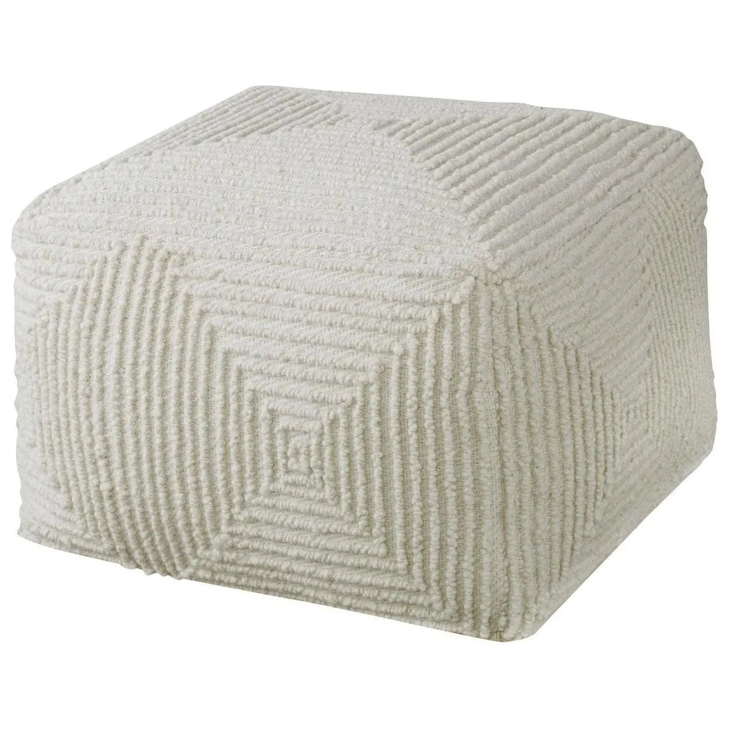 Handwoven From 100% Wool In Soft Ivory, Accented By Subtle Geometric Inspired Patterns. Perfectly Oversized To Use As A Footrest Or An Extra Place To Sit.