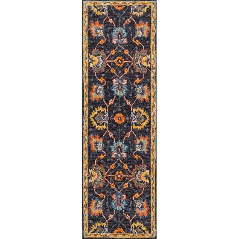 Ibiza Ibi 3 Charcoal area rug, a stunning piece that reimagines the timeless Persian carpet with a burst of contemporary flair. This collection features rich hues that breathe new life into traditional motifs, showcasing vibrant pink, orange, blue, and yellow tones intricately woven into floral patterns and medallions. Hand-tufted from luxurious 100% natural wool, each rug exudes elegance and charm while making a bold statement in any room.