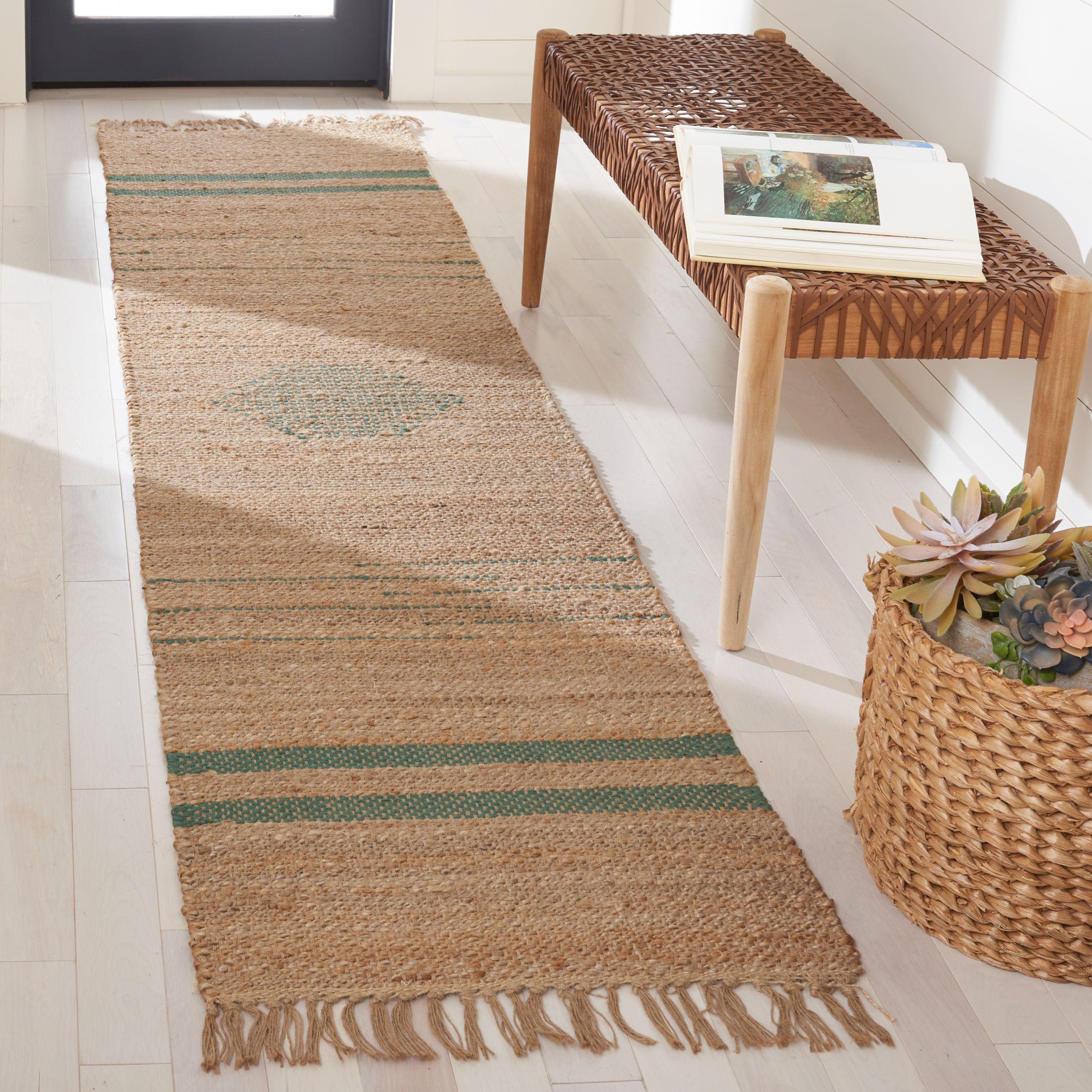 Natural Fiber NF121Y rug, blending bohemian and tribal influences to infuse a laid-back vibe into your living space. Artisans skillfully hand-weave this rug using natural jute fibers, creating a unique design adorned with long fringed tassels for a touch of elegance. Its versatile style complements farmhouse, rustic, contemporary, casual, and coastal home décor themes seamlessly. With an approximate thickness of 0.39 inches, this rug adds both comfort and style to any room.