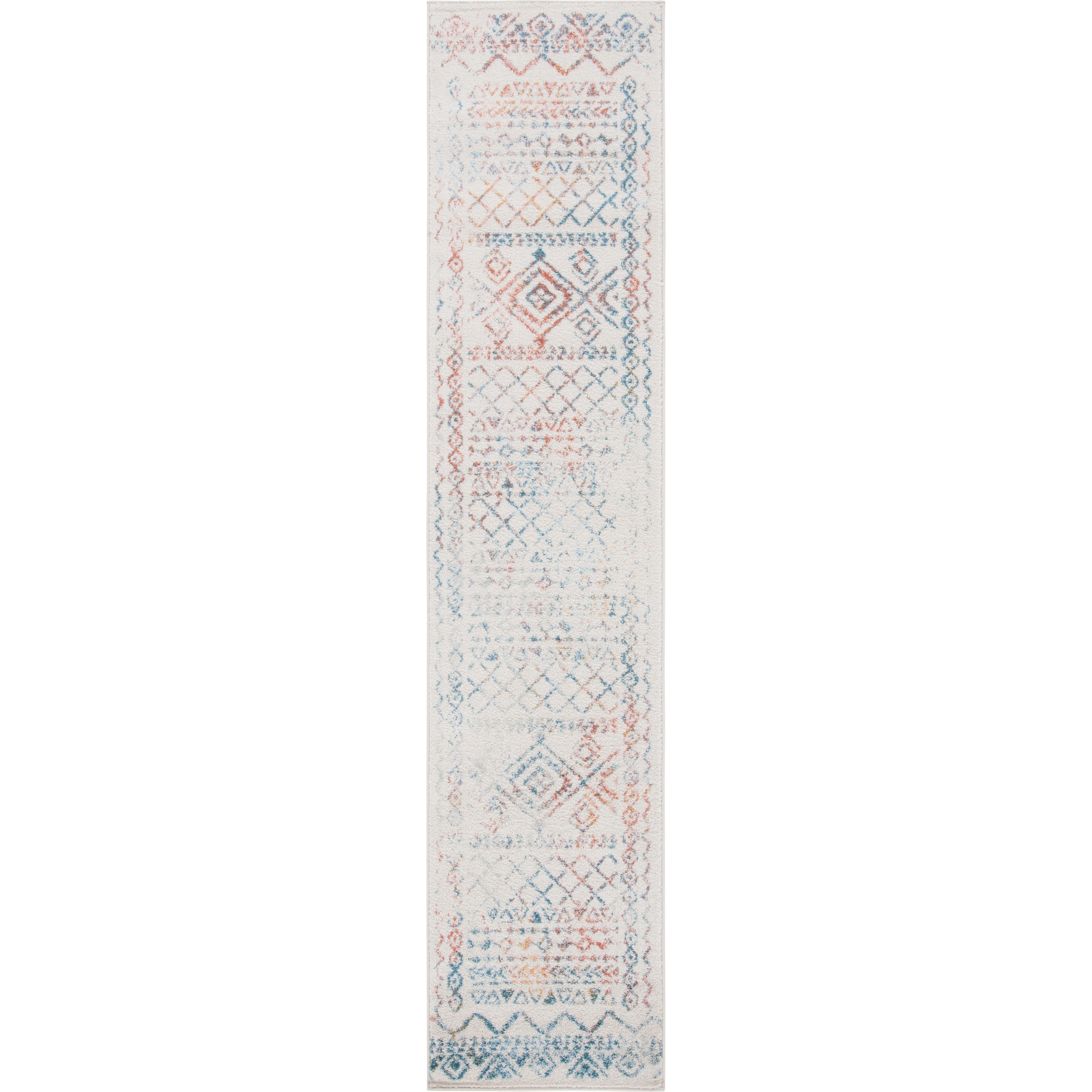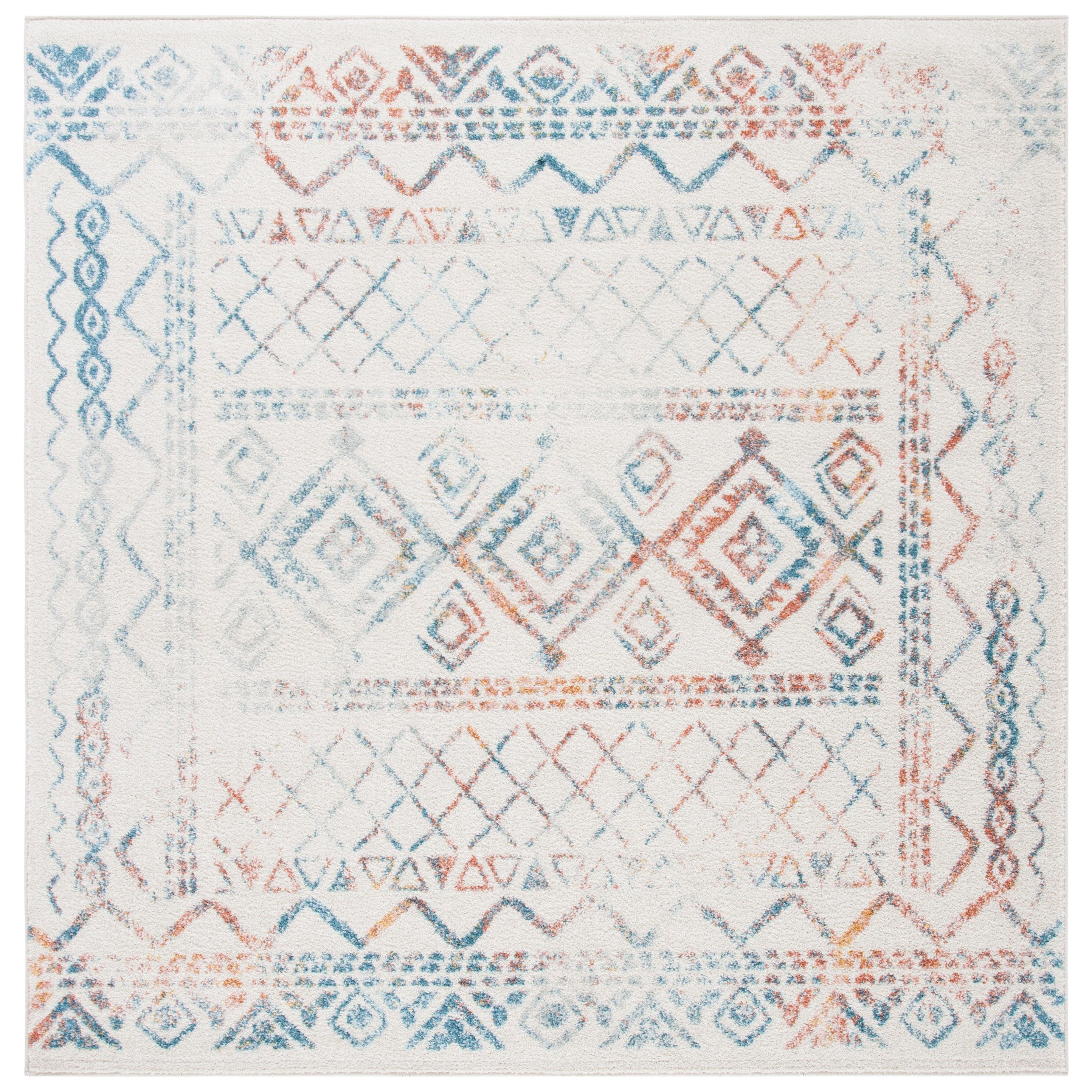 Tulum TUL268M area rug from the Tulum Collection by SAFAVIEH, featuring a delightful mix of soft hues and rustic patterns. This boho-chic rug effortlessly combines modern colors with craft art-inspired designs, adding a touch of warmth and style to any room. Crafted from soft synthetic yarns, the Tulum rug offers both a unique look and a plush underfoot feel with its approximate thickness of 0.4 inches.