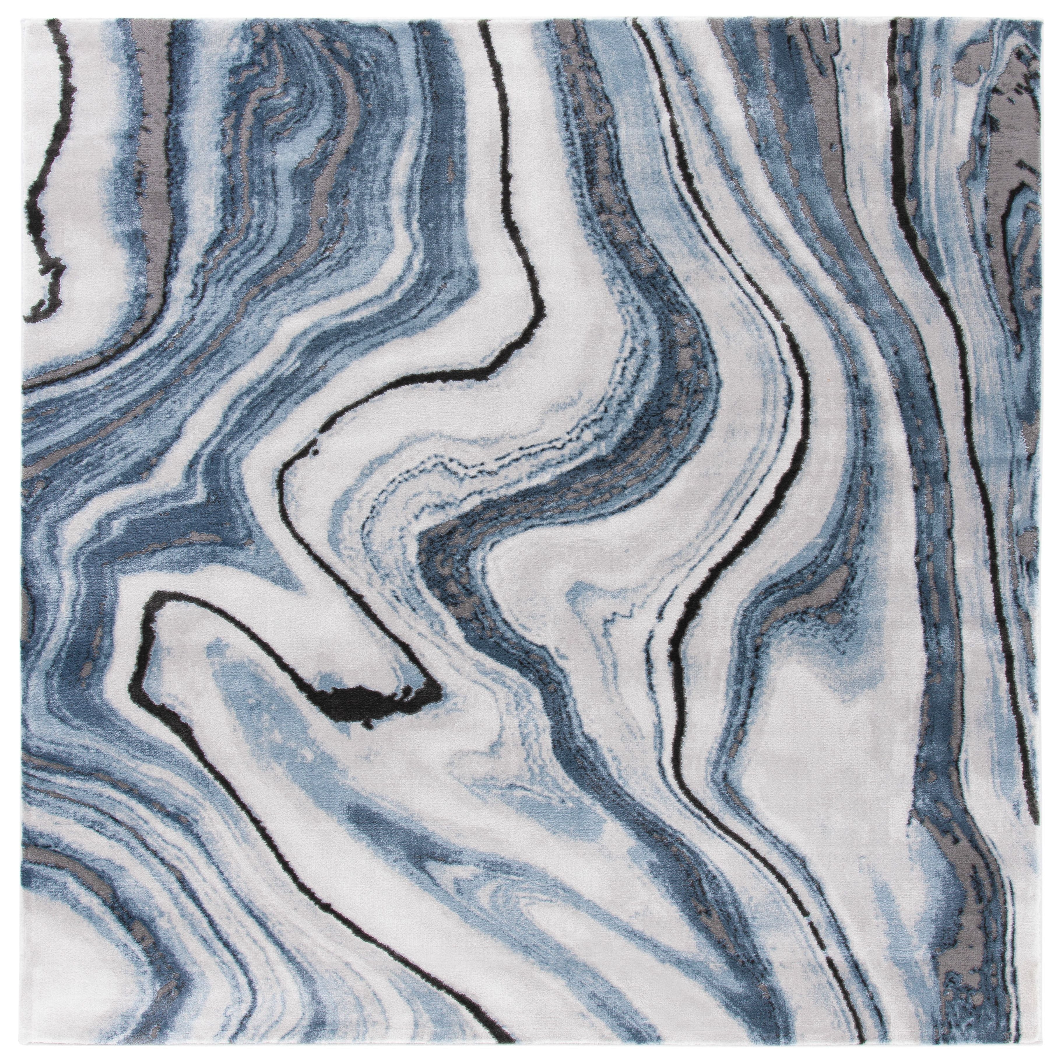 Elevate your contemporary living space with the Craft CFT819M rug from SAFAVIEH's Craft Collection. The flowing marble pattern, accented with shimmering details, adds a touch of glamour to any room. This abstract rug is expertly machine-woven using soft and durable synthetic yarns, ensuring long-lasting beauty and comfort underfoot with an approximate thickness of 0.5 inches.