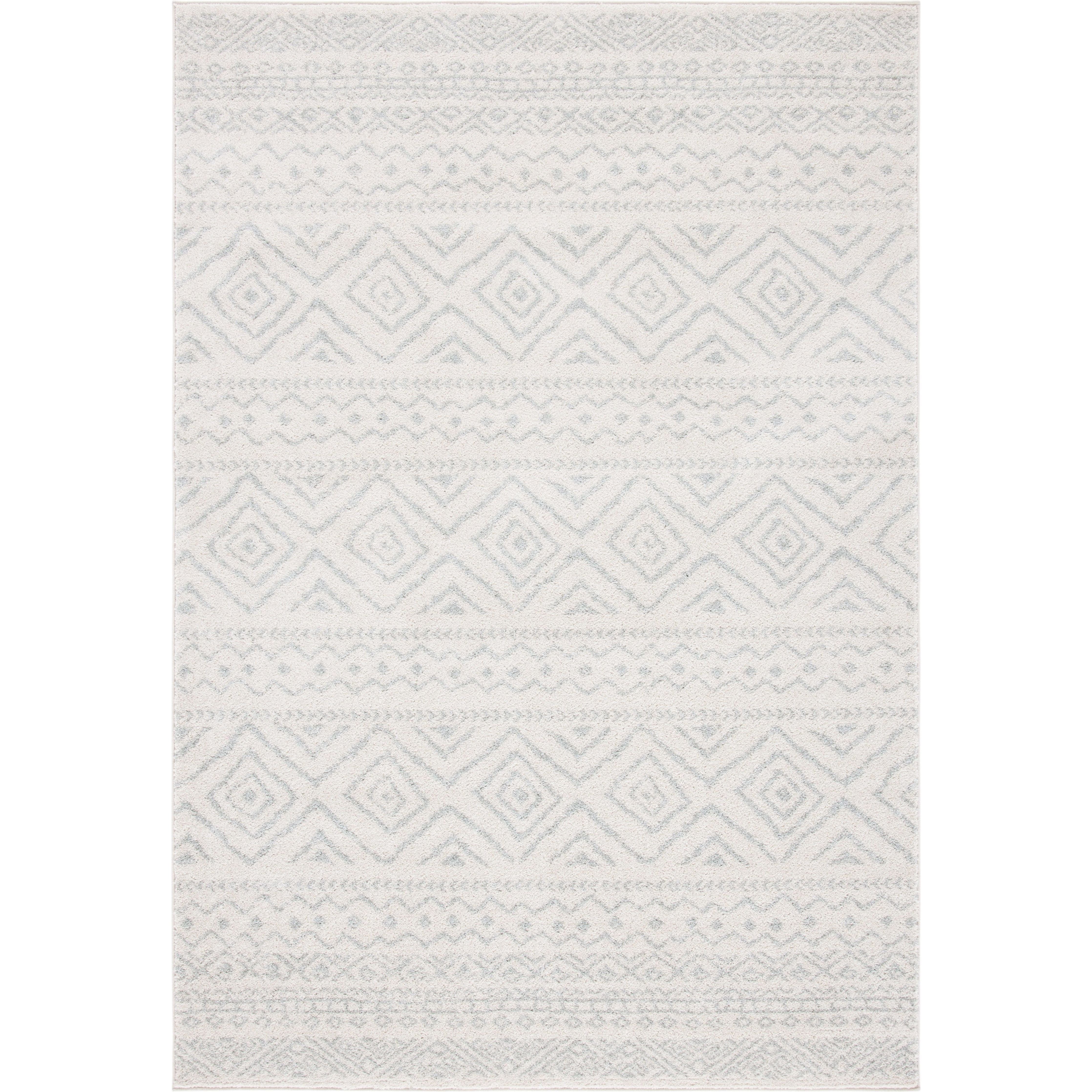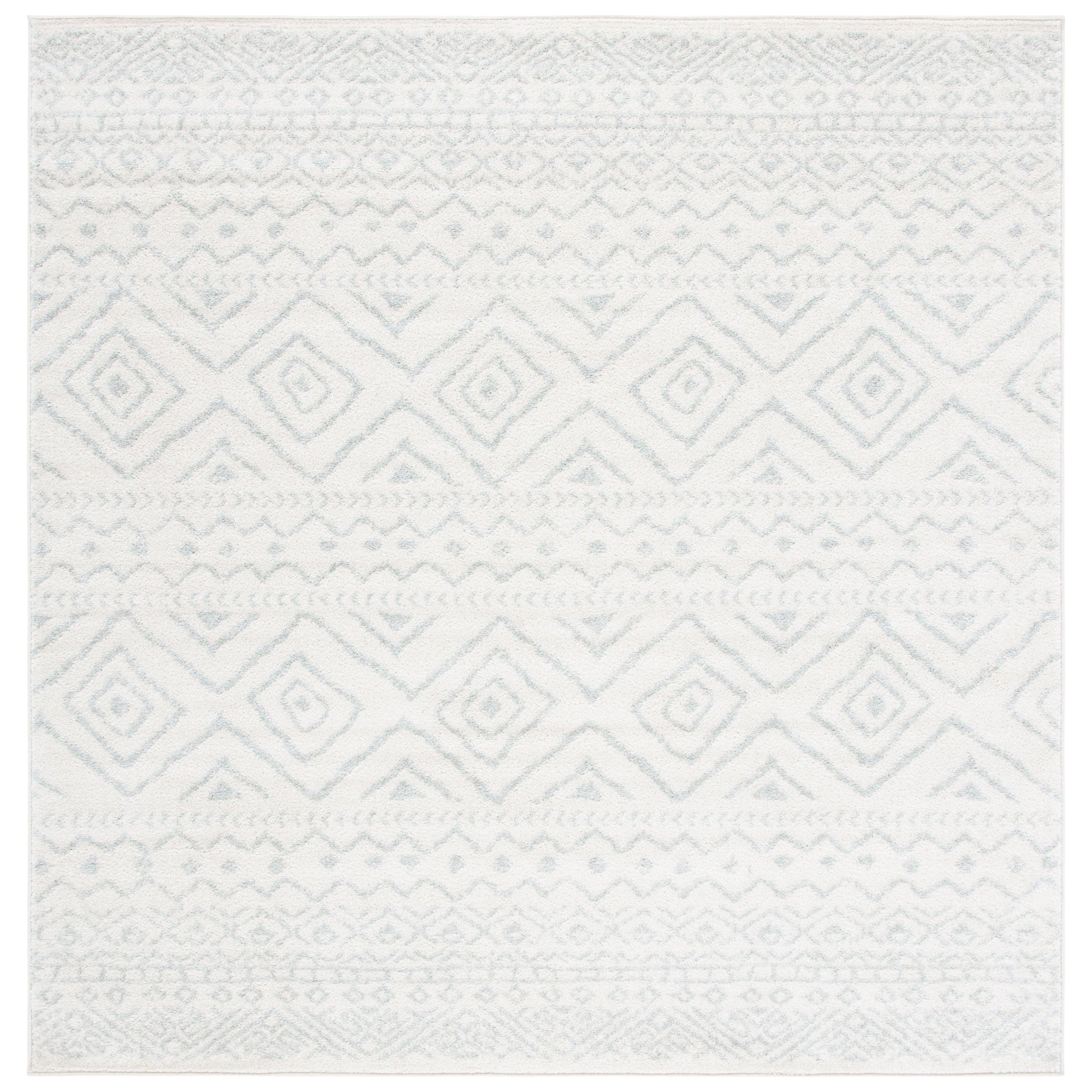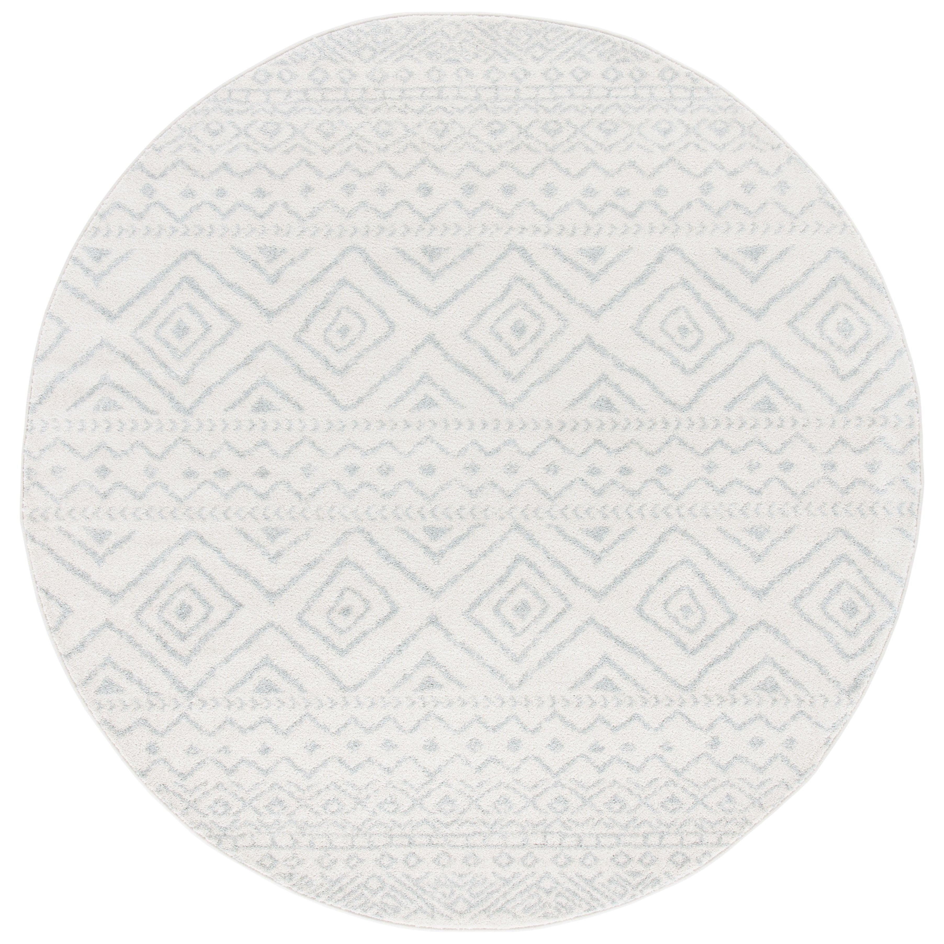 Tulum TUL267B area rug from the Tulum Collection by SAFAVIEH. Soft, refreshing hues blend beautifully with rustic patterns for a boho-chic look that will elevate any room decor. Crafted with high-quality synthetic yarns, these rugs offer both style and comfort with a plush thickness of approximately 0.4 inches.