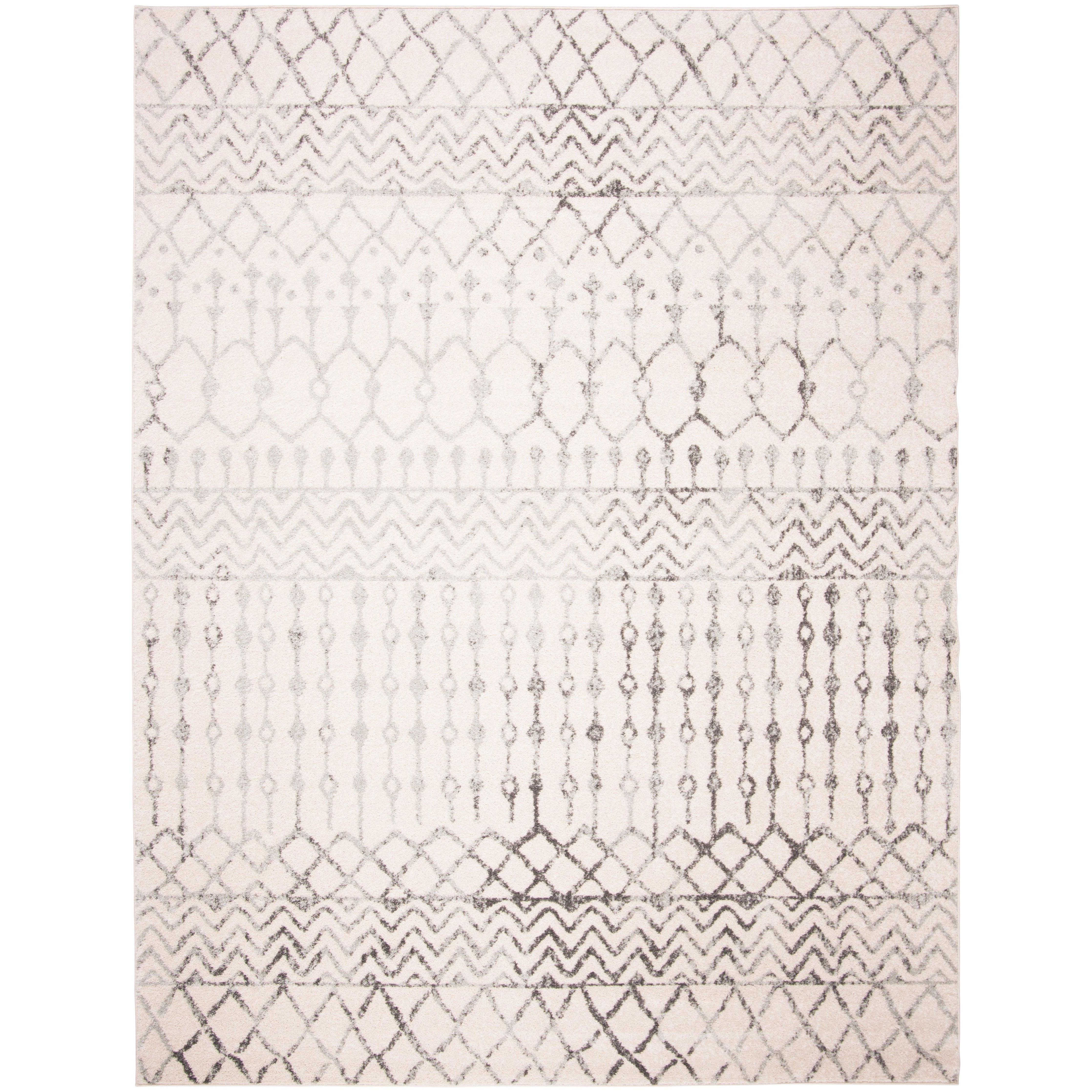 Tulum TUL270A from the Tulum Collection by SAFAVIEH, where soft hues and rustic patterns come together in a refreshing display. These boho-chic area rugs blend modern colors with craft art-inspired designs to bring warmth and character to any room. Crafted with soft synthetic yarns, the Tulum rugs offer a distinctive look and a comforting feel underfoot, with an approximate thickness of 0.4 inches.