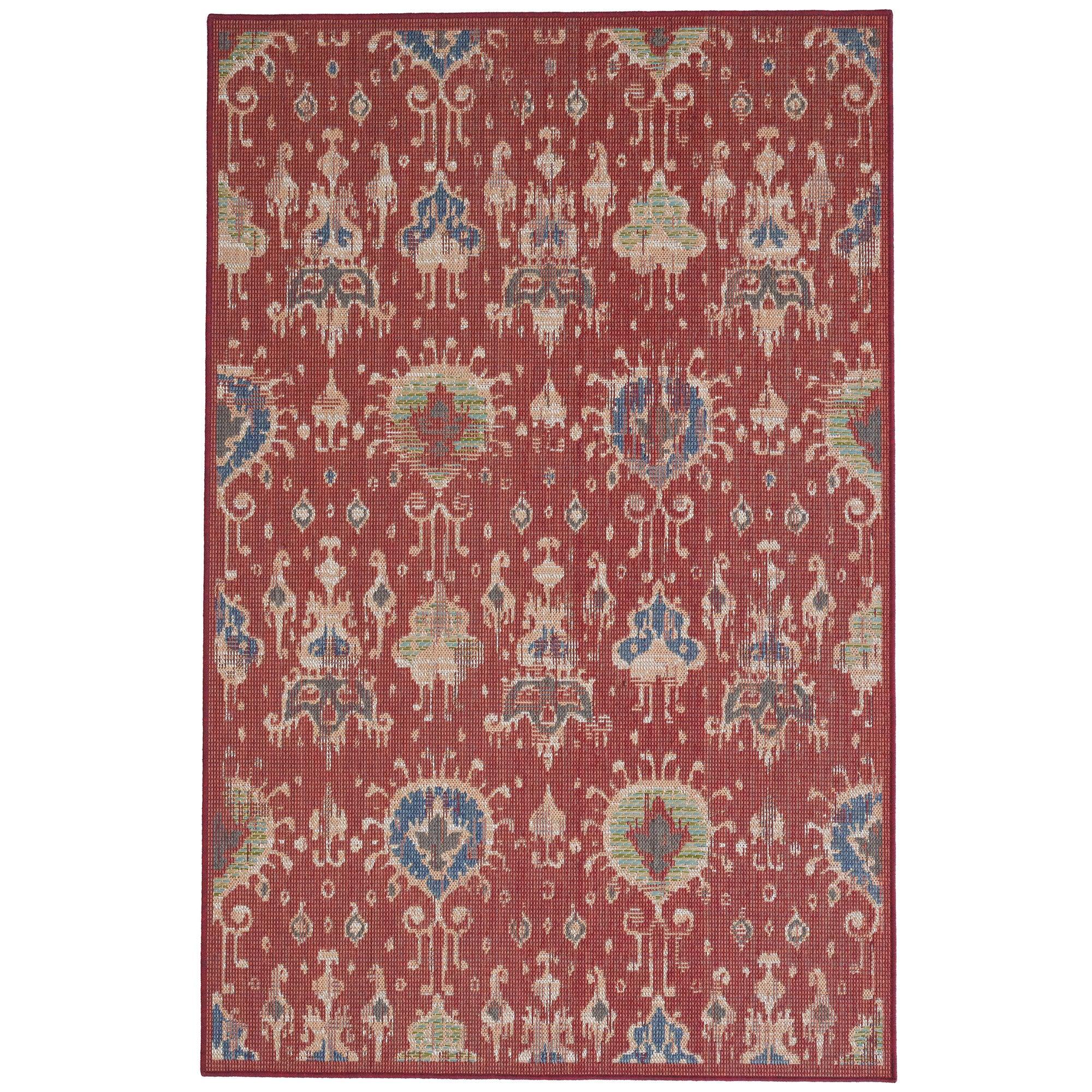 captivating Captiva Ikat Red indoor/outdoor collection, where vibrant colors and intricate designs come together to elevate your space. Whether you prefer traditional, transitional, or modern styles for your relaxation spot, Captiva has something for you. Crafted using 100% Olefin yarns on Wilton power looms, these rugs are built to withstand all weather conditions, making them perfect for both indoor and outdoor use. Enhance the aesthetics of your interior or exterior spaces with the durable and stylish Captiva collection. Choose Captiva Ikat Red to add a pop of color and sophistication to your home.