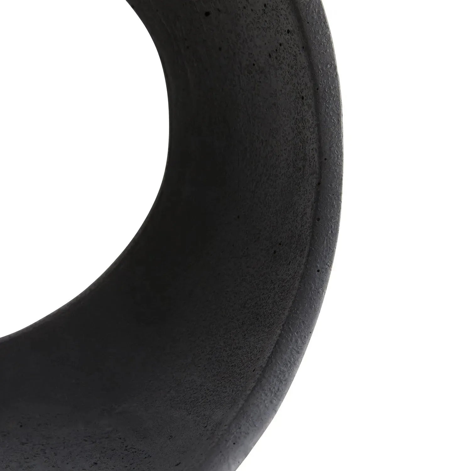 Sweeping curves reflect the volatile and peaceful movements of oceanic currents in this orb-like structure. Its abstract open-form profile is constructed of ricestone in a charcoal finish that is reminiscent of lava stone. A thin antique brass embellishments that trace part of its silhouette. Showcase on a console or ?tag?re and let this sculpture be a representation of what`s to come.