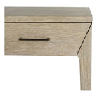This petite desk puts forth a simple and straightforward style. Its functional design favors clean lines and absolute angles that define the space it occupies. A smoke finish enhances the natural grains of its solid oak construction and faceted vintage brass pulls effortlessly elevate its modest aesthetic. Smaller in scale we see this piece best utilized as a compact desk or a vanity table.