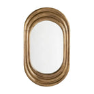 Expanding on an Arteriors design classic, antique brass and plain glass artistically pair to create this visually commanding mirror. Concentric pillowed ribbing creates a visual effect that the frame is growing outward from the center, making this an exceptional piece to add depth to a space. The brass clad foundation is finished in a moody dark antique look we adore. Security cleat hanging hardware allows for vertical or horizontal display. Finish will vary.