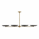 Streamlined yet elegant, this linear chandelier made from steel balances a bold bronze finish with an elegant antique brass frame. The bronze upward facing plates diffuse the light and create a warm, even glow. Additional pipe available (PIPE-422). Damp-rated, although limited covered outdoor areas may affect finish.