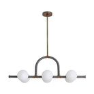 Minimalist and modern, the Harrison is a paradigm of linear lighting. Its lined silhouette presents six opal glass globes and is composed of antique brass steel that has been wrapped in cream-colored leather. The middle of the frame features an arch that was inspired by the grand corridors of historic buildings, lending an architectural element to its straightforward design. Finish will vary. Additional pipe available (PIPE-422). Damp rated, though limited outdoor conditions may affect finish.
