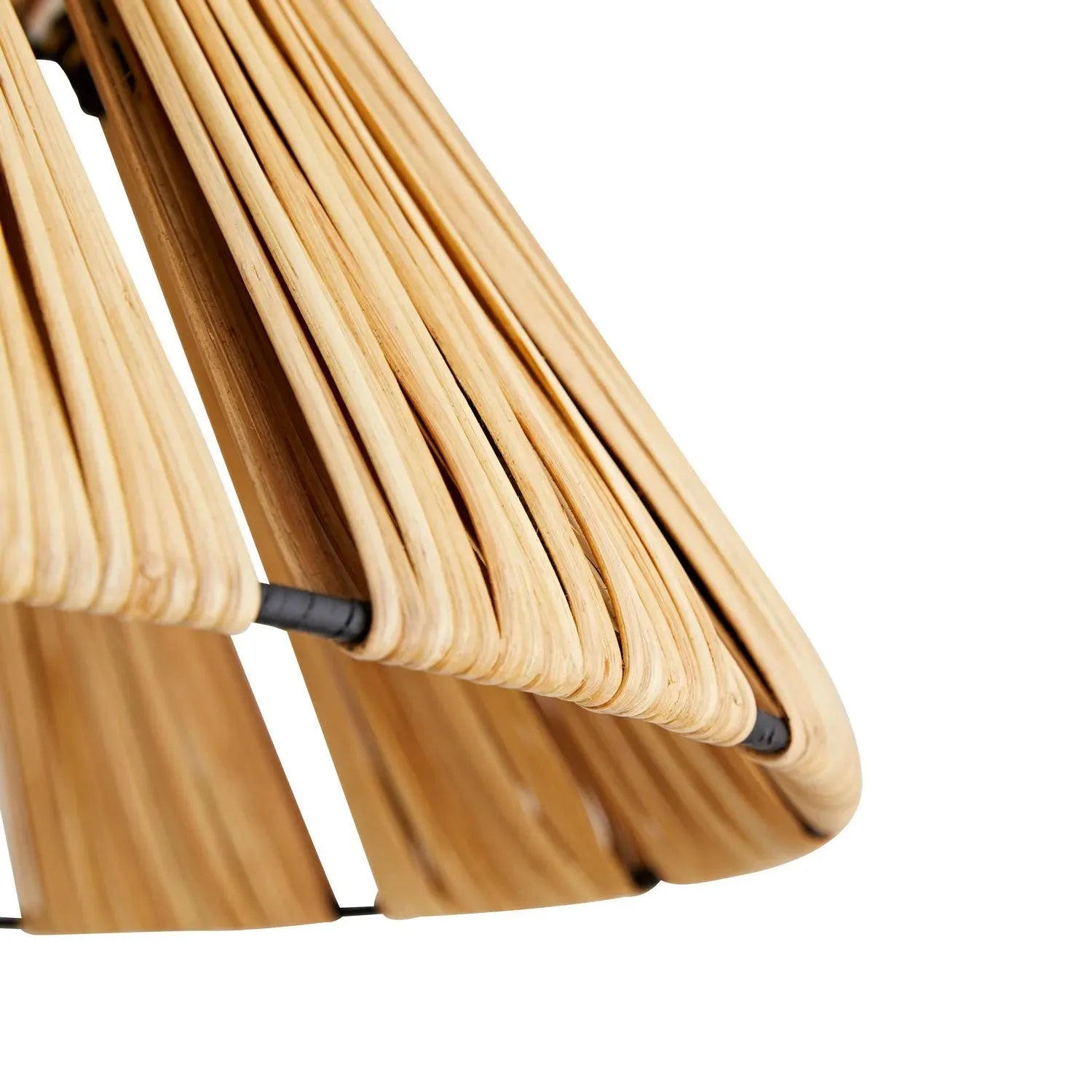 The Harvey pendant's design is quite rare. Natural rattan is first steamed and then wrapped by hand onto a steel frame in a wheat sheaf fashion then cinched in a ponytrail style with black rattan. An unrivaled design and use of mixed materials deliver captivating visual appeal. An antique brass pipe showcases the unique shade and delivers a contrasting element that elevates its natural aesthetic. Finish will vary. Additional pipe available (PIPE-101). Damp rated, though limited outdoor conditions may affect finish.