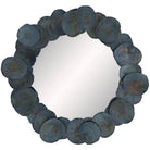 The Kensey Discs Mirror takes over 20 large discs of iron to make each mirror and each disc must undergo an intensive process in order to get their interesting oxidized look. Discs are hand-cut forming the raw edges then given an oxidized finish wi th a chemical-and-fire technique. This free-hand artistry comes together to frame an industrial rich mirror. Available in a similar style with smaller discs (3132) as well as a series of wall plaques in small (3146) medium (3147) and large (3148).