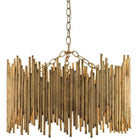 Individual iron rods are welded together and hand-finished with gold leaf to create this striking three-light pendant. Rustic but elegant. Part of the Prescott collection of mirrors and sconces. Additional chain available CHN-886.