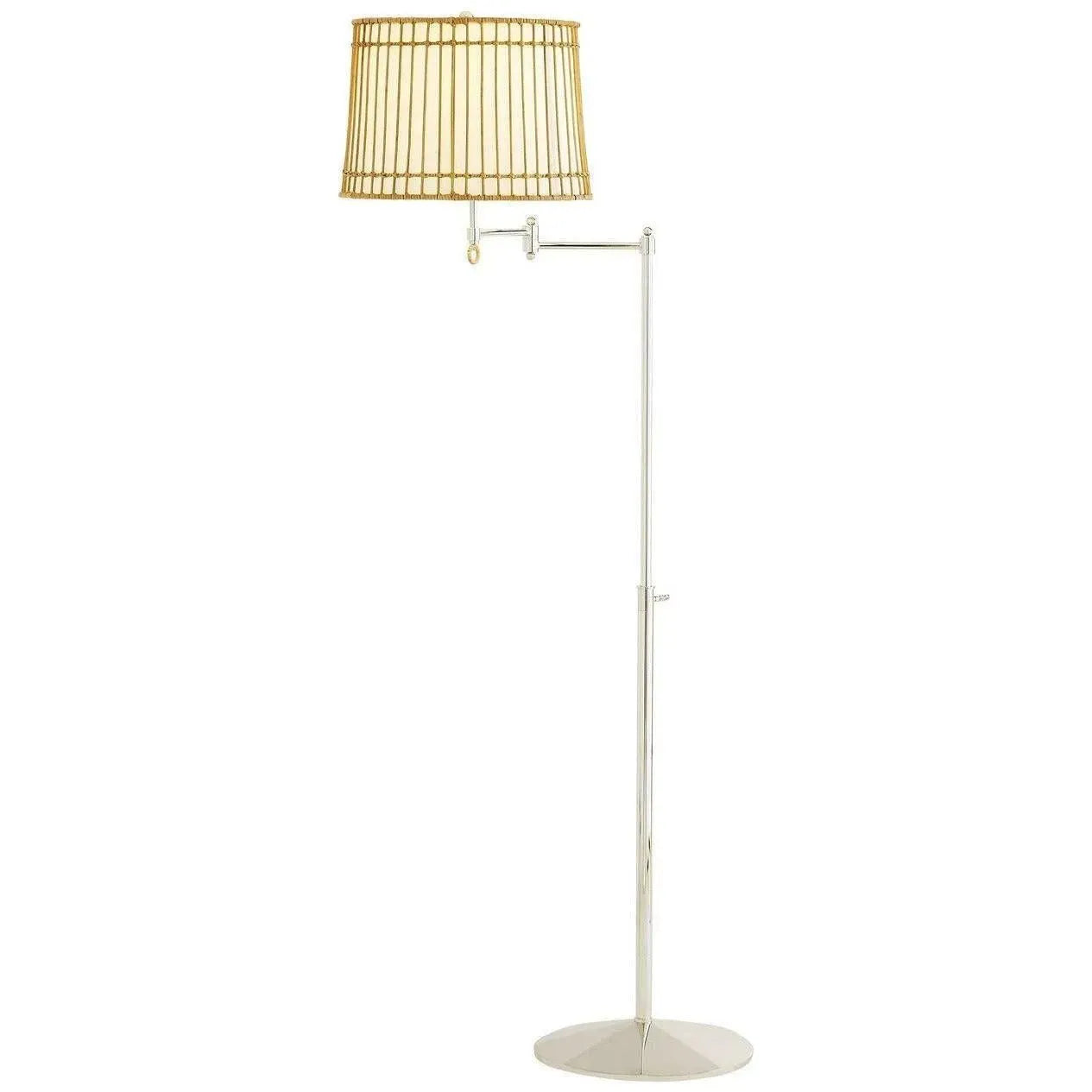 Recalling the humble yet complex architecture of a wicker basket the Sea Island Floor Lamp has a rattan structure and an ivory linen-wrapped interior. It perches like a birdcage on top of a polished nickel pole with swivel top offering warm layer ed light the horizontal and vertical lines creating subtle pattern play. Beth Webb believes in the power of lighting to create comfort romance and ease.