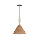 Inspired By A Tiki Shade, This Natural Rattan Is Accented With Vertically Aligned Brass Structures Creating A Wide Hovering Shape. Vintage Brass Chains Then Connect The Top To Its Base In A Sturdy Yet Sophisticated Style.