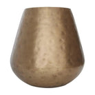 The tall Soledad iron vase, in an antique brass finish, imparts a worldly sensibility—as if picked up in a far-flung market. The exotic vessel presents a reflective element into a space.