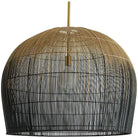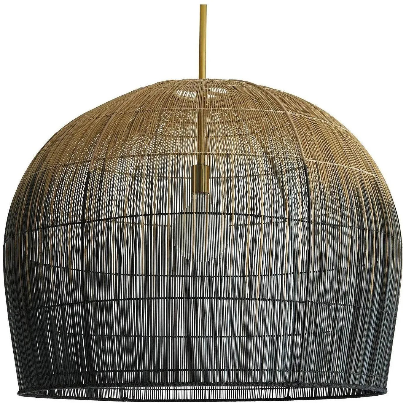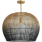 Makers utilize old world techniques to create this luxurious and modern piece. Made with hundreds of thin buri sticks derived from a palm in the Asian tropics the pendant is formed using traditional techniques practiced to make fishing baskets. Don't let the ancient construction techniques fool you the bell shape antique brass pipe kit and ombre finish add contemporary flair. Also comes in a larger scale (45061). Additional pipe available (PIPE-101).