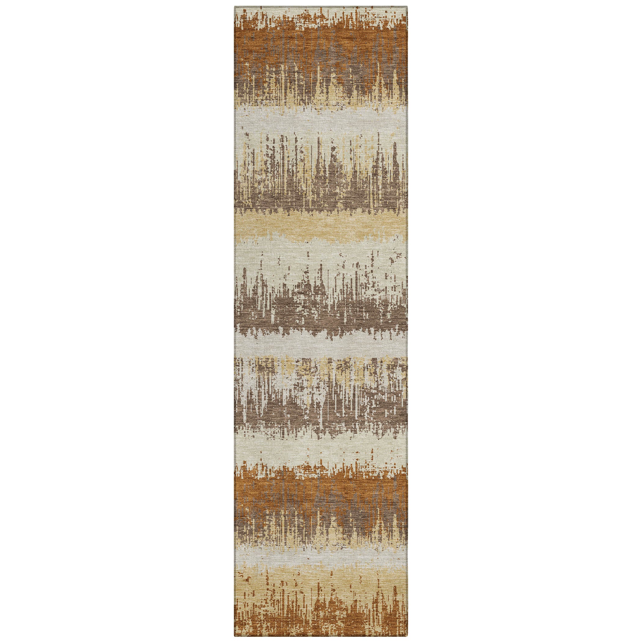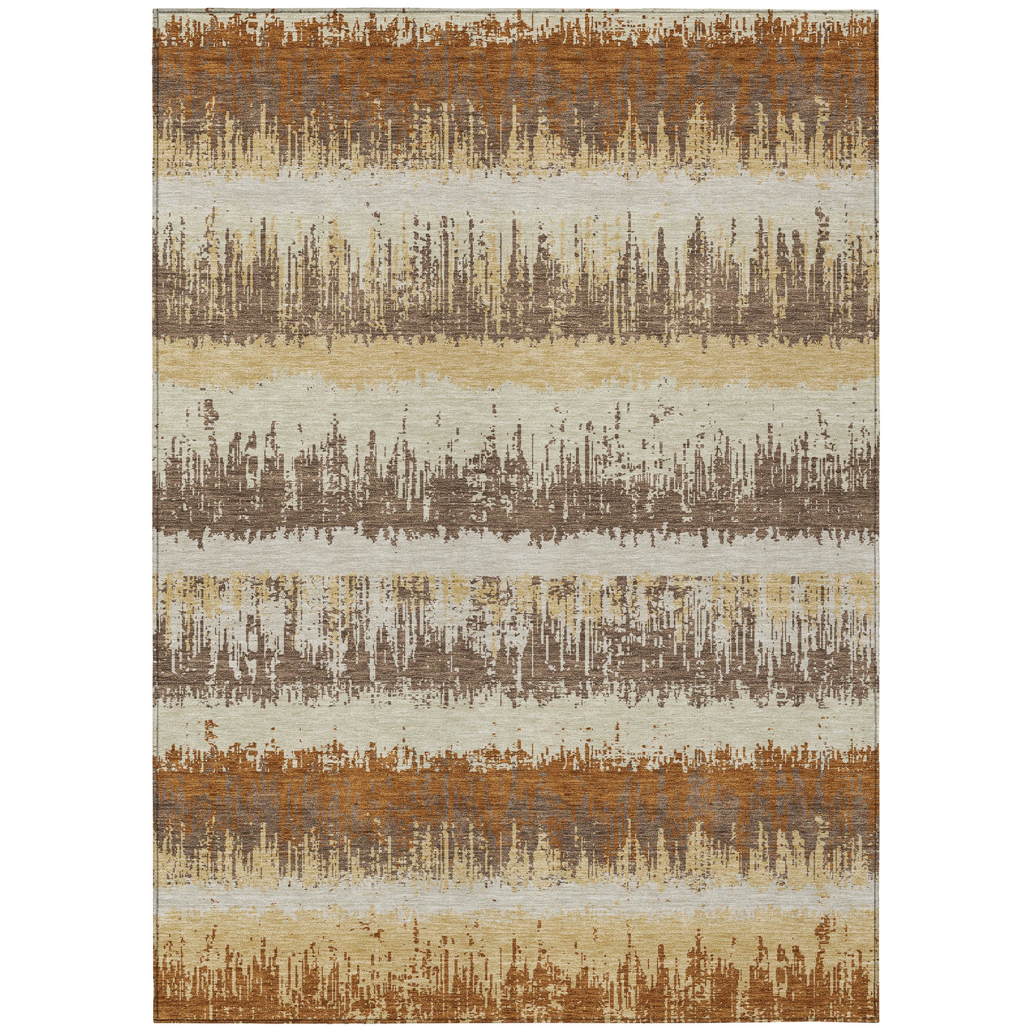 The sleek horizontal stripes and subtle drip effects of our transitional area rug will elevate your homes aesthetic with modern sophistication. This versatile design seamlessly integrates into any space. Crafted to last, its UV stabilized for use in both indoor and outdoor environments and boasts an ultra-thin profile for convenience. Additionally, the machine-washable material and pet-friendly quality make it an ideal choice for families looking for both style and practicality.