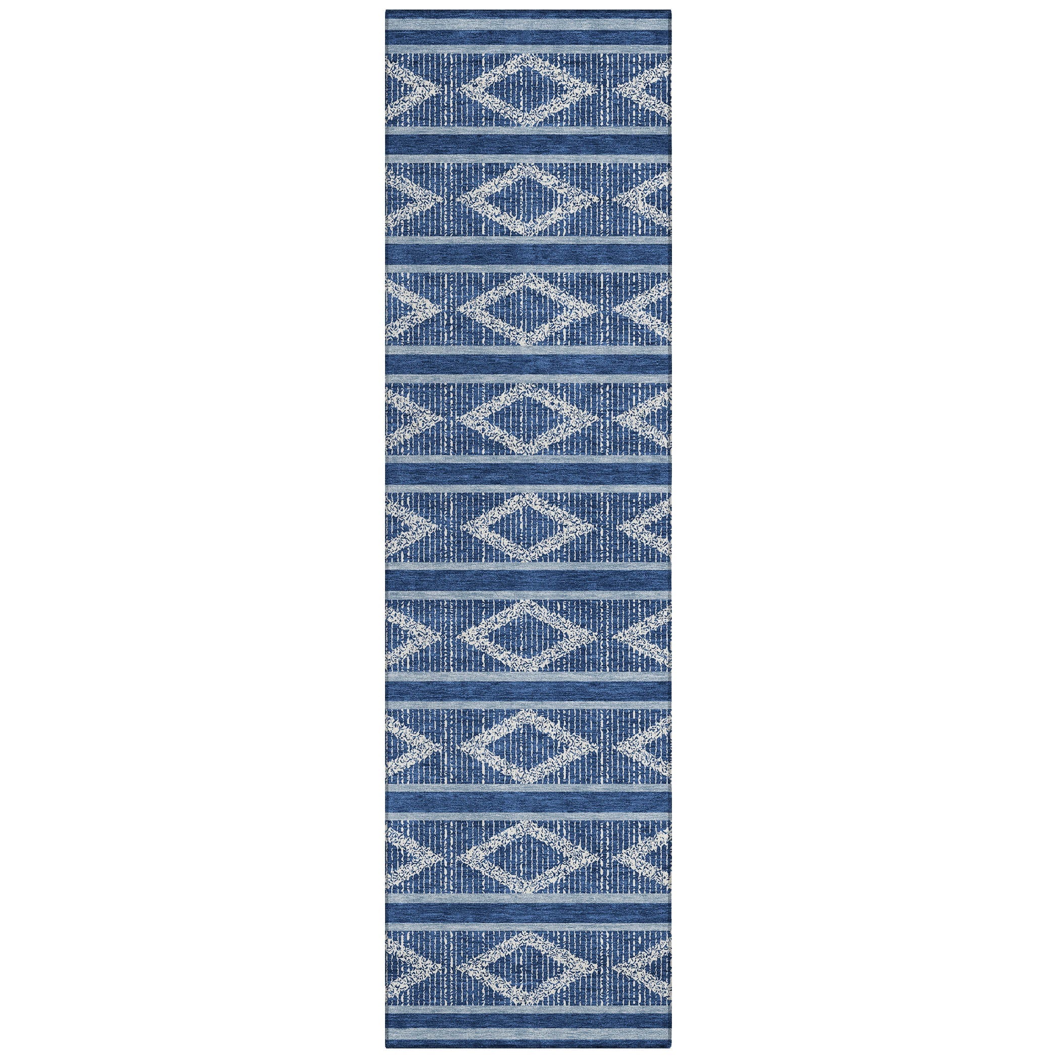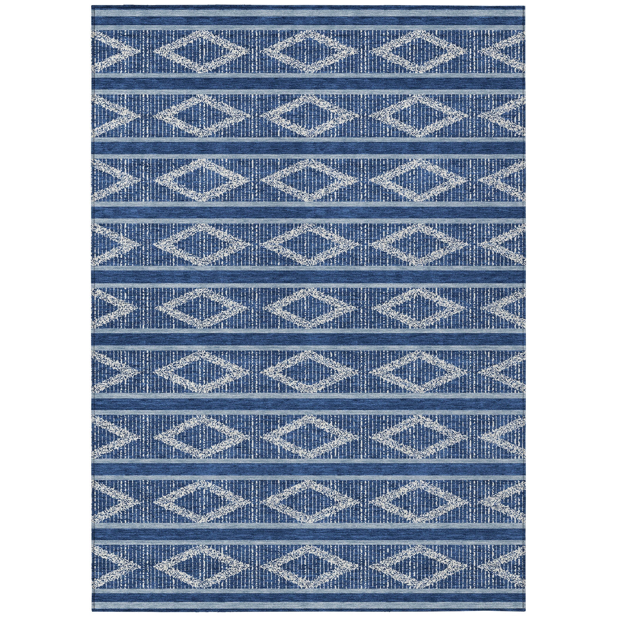 Discover the perfect blend of style and functionality with our transitional area rug, adorned with stripes that incorporate a subtle diamond pattern for a geometric look. This design seamlessly fits into both contemporary and traditional settings, enhancing your home with its elegant lines. UV stabilized for use in any environment, ultra-thin for effortless placement, and machine-washable for easy care, this rug is ideal for families with pets, offering both beauty and durability.