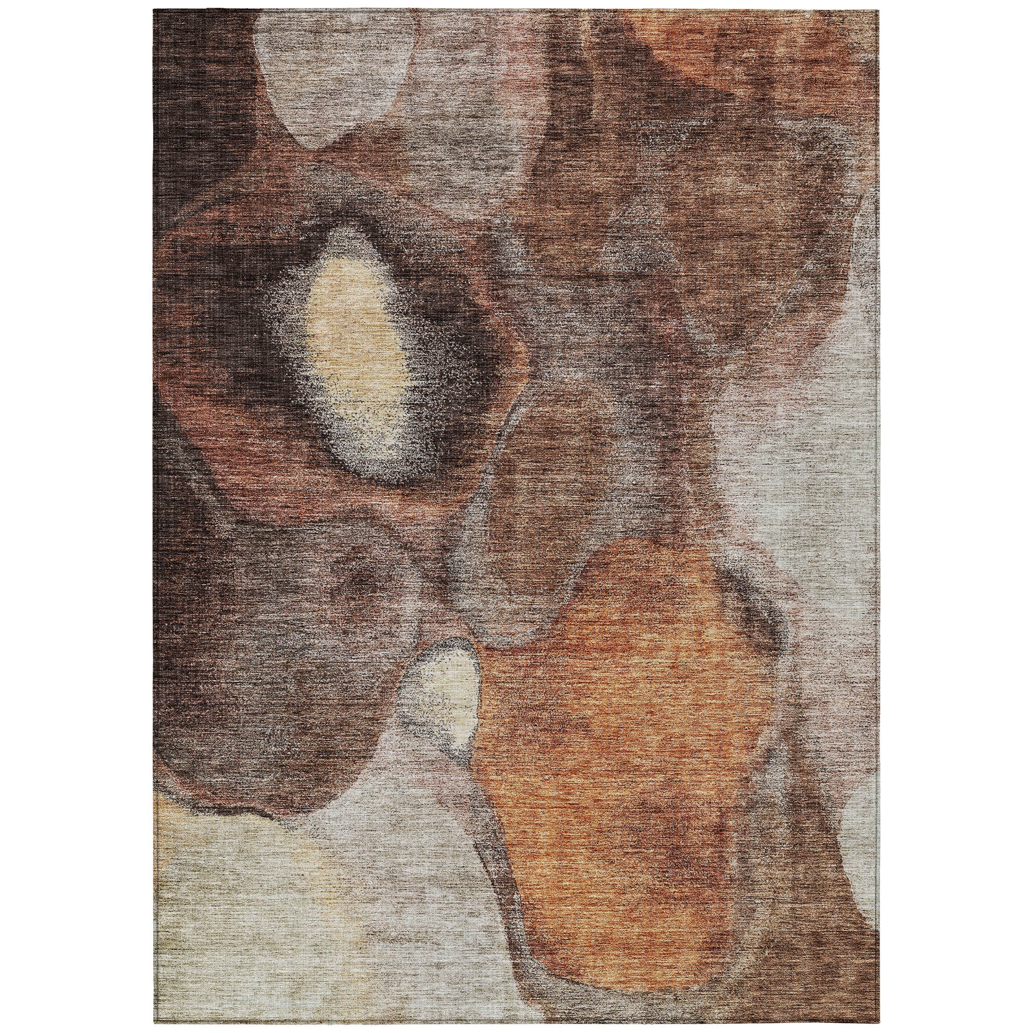 Introduce a stylish element to your home with our area rug, showcasing a modern flair with multiple shapes in earthy tones, perfect for transitional decor. This rug is UV stabilized for both indoor and outdoor use, and its ultra-thin construction ensures it fits seamlessly into any space. Plus, it's machine-washable, making it ideal for families and pet owners.
