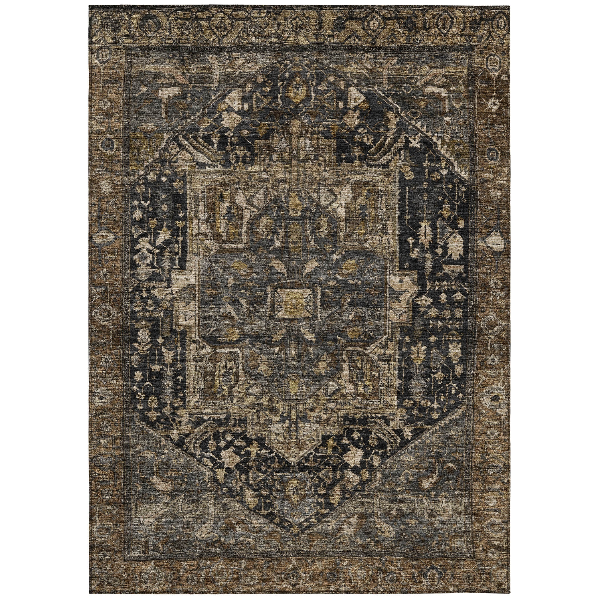 Highlighting a formal medallion vintage and distressed pattern, this rug brings an air of classic elegance to any room. The medallion design, combined with distressed accents, creates a sense of timeless beauty. UV stabilized for versatile indoor or outdoor use, it promises long-lasting appeal. Its ultra-thin profile lies flat and is machine-washable for convenience. Suitable for homes with kids and pets, this rug combines elegance with functionality.