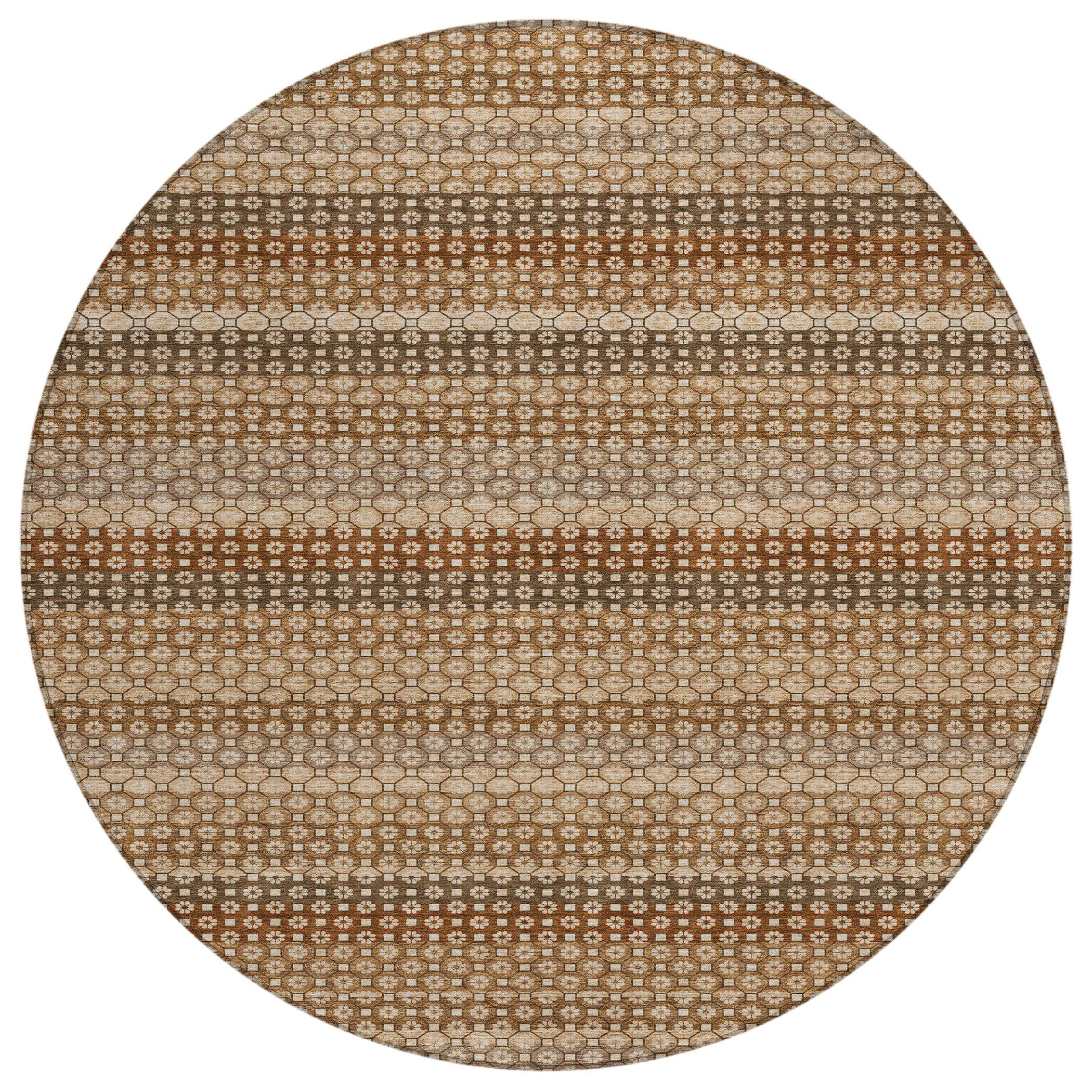 Revamp your decor with the stylish small circles that create a horizontal stripe in this transitional rug. The distinctive striped pattern enhances any space with its contemporary flair. UV stabilized for versatile use, it has an ultra-thin construction. This machine-washable rug is family and pet-friendly, offering both style and convenience.