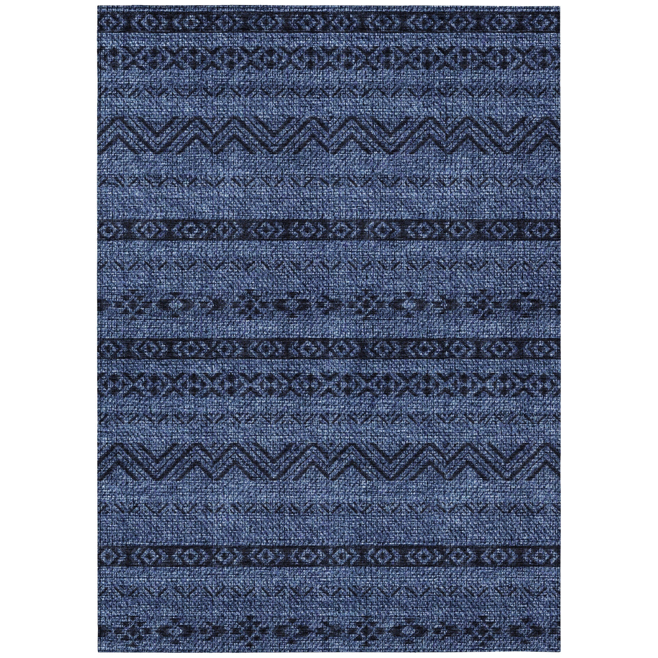 Introduce a touch of sophistication to your living space with our Chantille ACN803 Navy area rug. Designed with horizontal southwest and tribal patterns, this rug effortlessly blends modern and traditional styles, making it a versatile addition to any room. Not only does it elevate your decor, but it also offers practical features for everyday use.