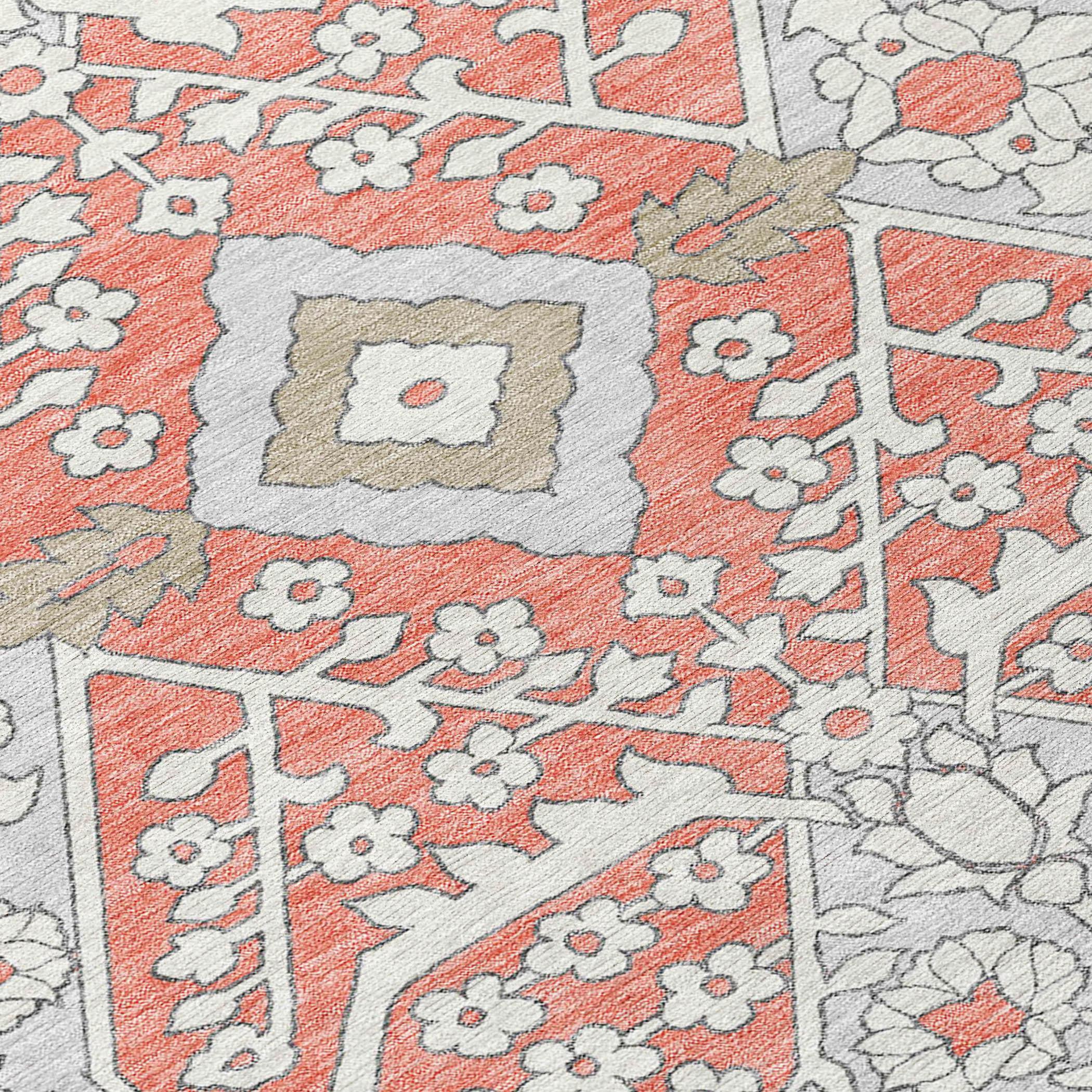 Chantille ACN863 Salmon area rug, a perfect blend of modern decor and timeless elegance. With an updated Agra pattern and striking oversized diamonds, this rug effortlessly combines traditional charm with contemporary flair. Its versatile design makes it a stylish statement piece for any room.