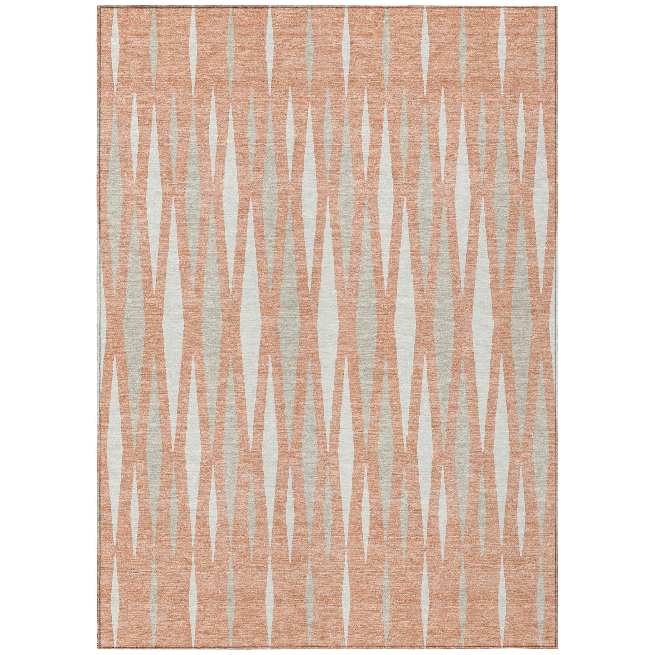 Elevate your decor with the Chantille ACN881 Salmon area rug. Featuring a stunning stretched diamond pattern and an inviting open center, this transitional rug adds a touch of elegance to any space. Whether used indoors or outdoors, its UV-stabilized design ensures lasting beauty. The ultra-thin construction seamlessly blends into your decor, while the machine-washable feature adds convenience to your cleaning routine. Created with your family and pets in mind, this rug prioritizes well-being along with style.