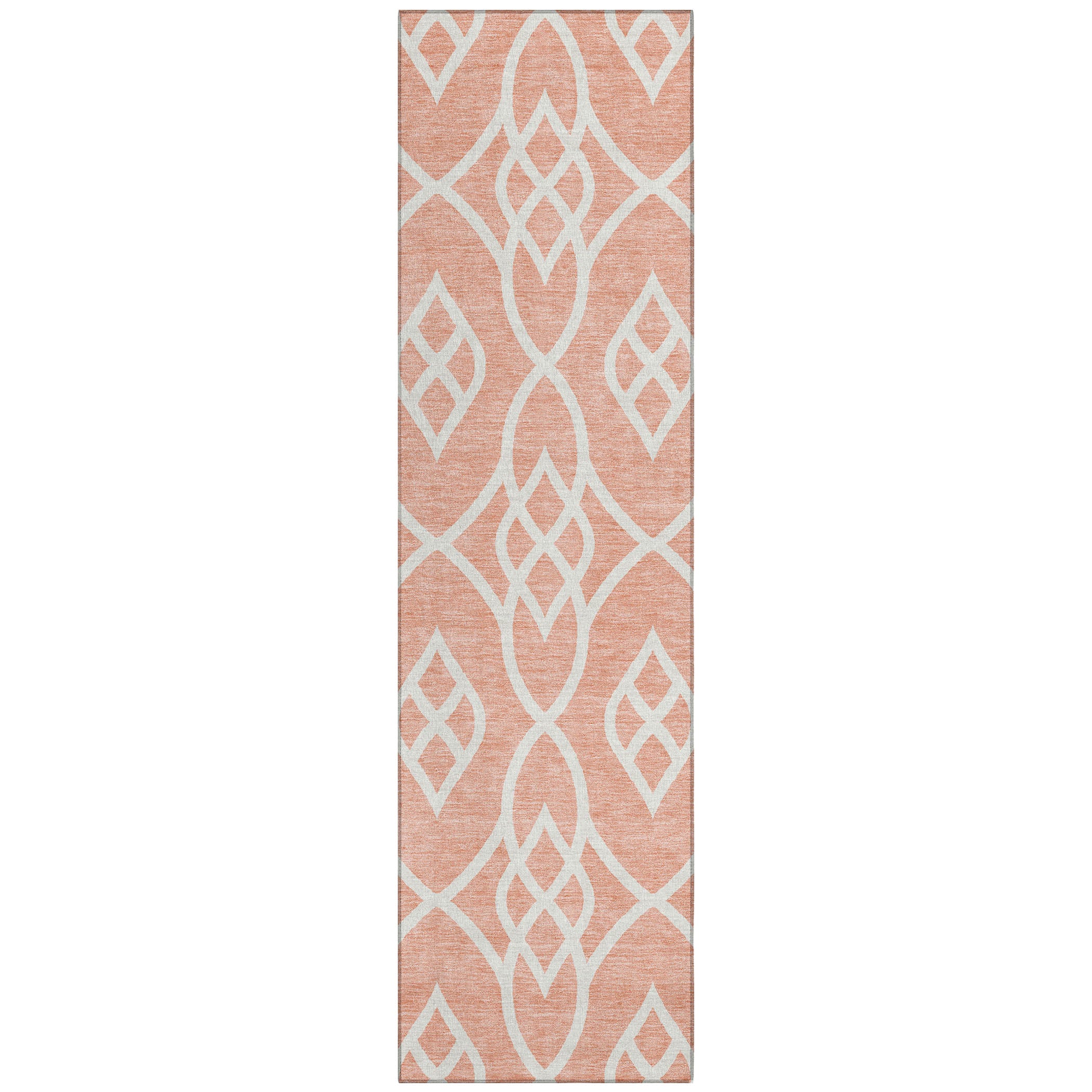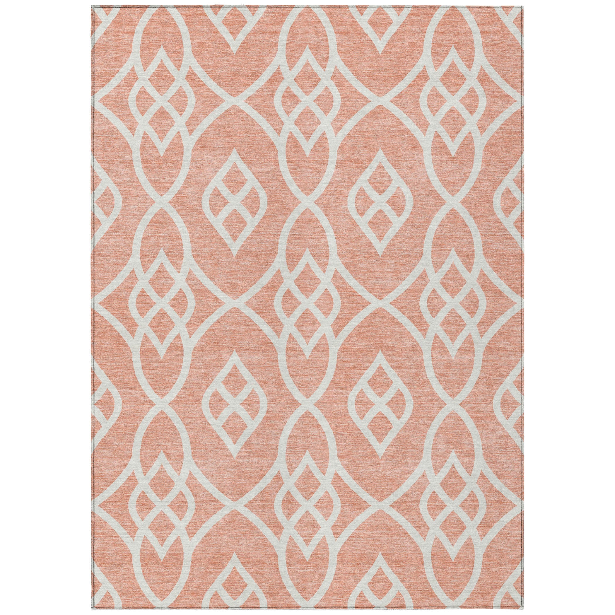Chantille ACN884 Salmon area rug, a stunning addition to your home decor. This transitional rug features a captivating scroll-like pattern that exudes movement and elegance, bringing a touch of timeless charm to any room. Perfect for both indoor and outdoor spaces, it is crafted with UV stabilization for long-lasting durability.