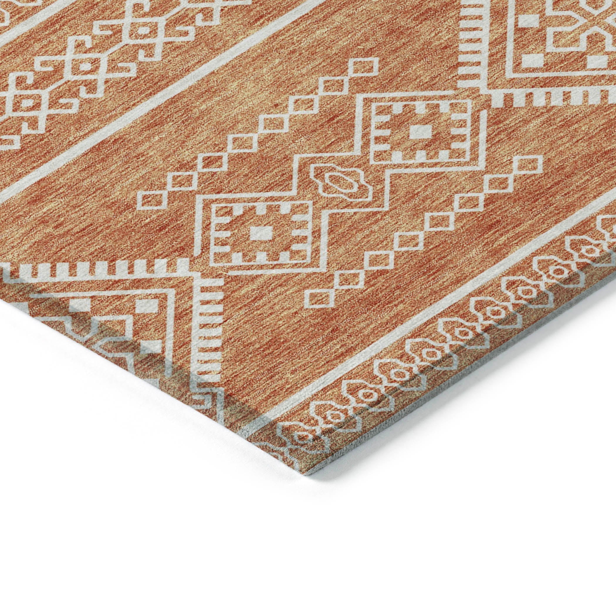 Introduce a touch of the southwest into your home with the Chantille ACN901 Copper area rug. This rug features a tribal design that exudes rustic elegance, adding a unique charm to any room. Crafted for both style and functionality, this transitional rug is designed with UV stabilization for durability and versatility. Its ultra-thin profile allows for seamless integration into any decor scheme. Enjoy the convenience of machine-washable maintenance, making it ideal for busy households with kids and pets. Embrace warmth and comfort with this welcoming rug that combines practicality with aesthetic appeal.