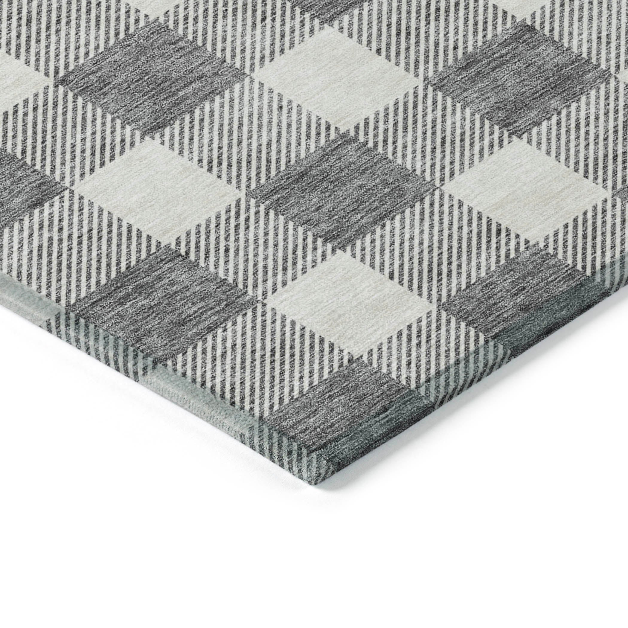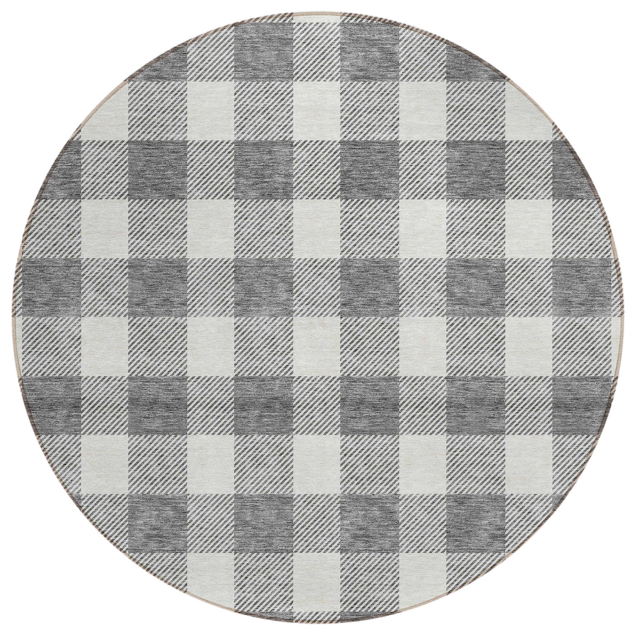 Chantille ACN923 Gray area rug, a stunning piece that effortlessly combines transitional and classic plaid styles. Its two-tone plaid pattern exudes elegance, making it a perfect addition to any indoor or outdoor space. This rug is UV stabilized, ensuring its colors stay vibrant even under the sun's rays.
