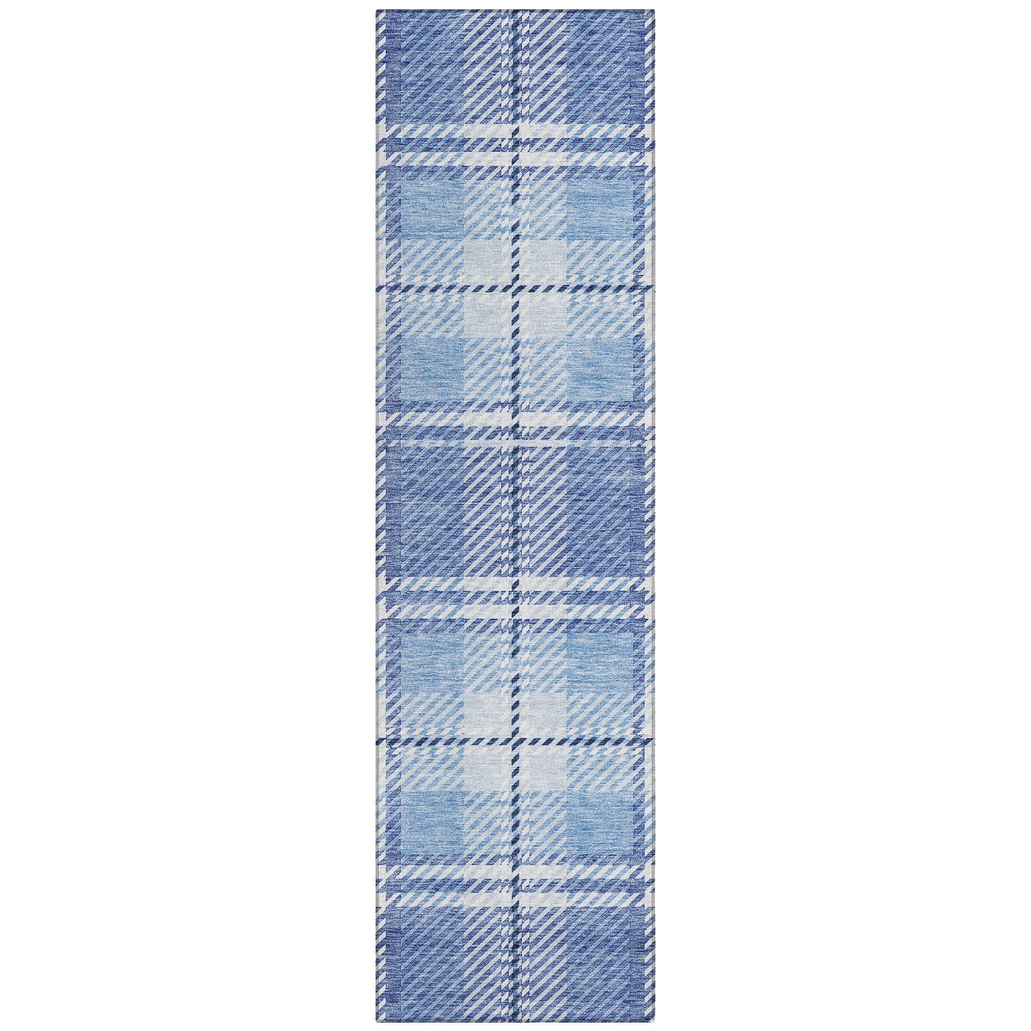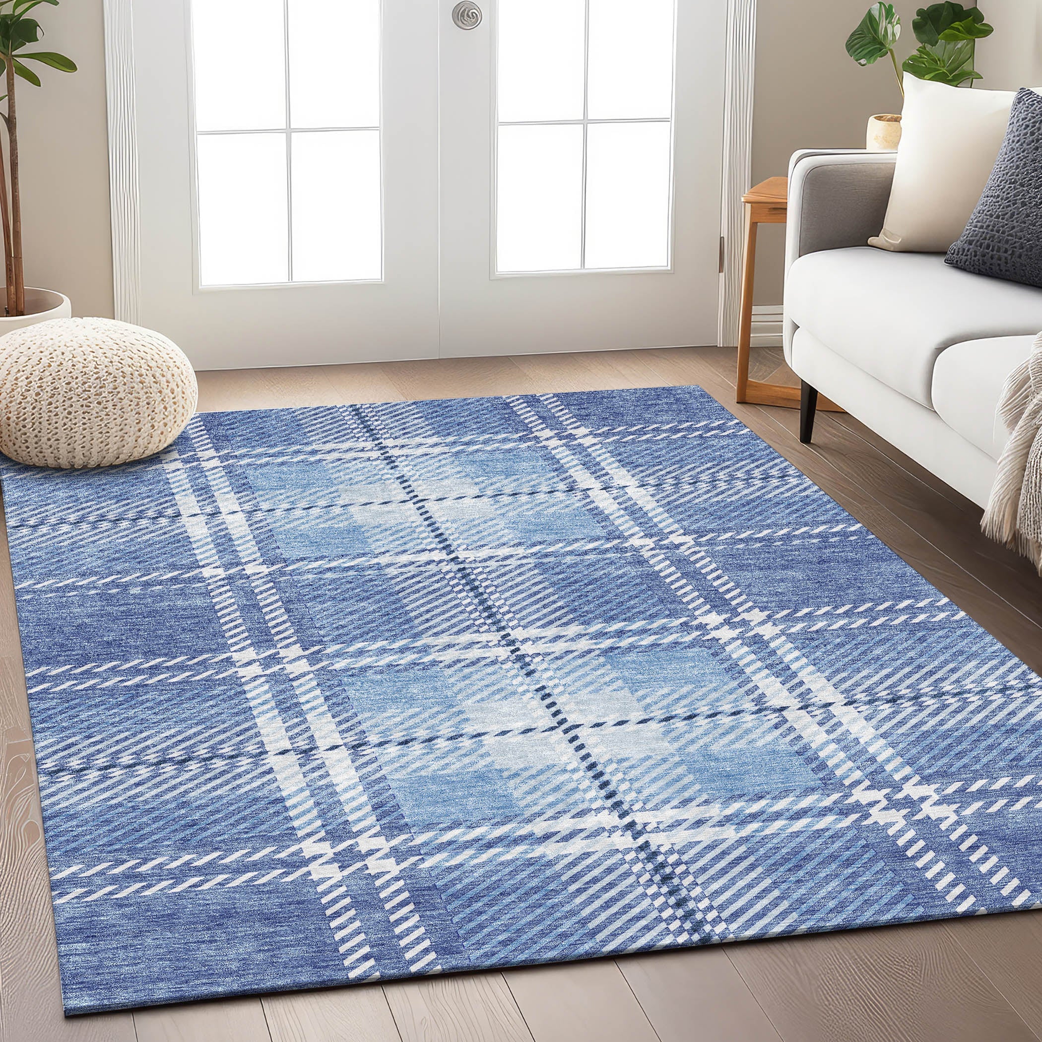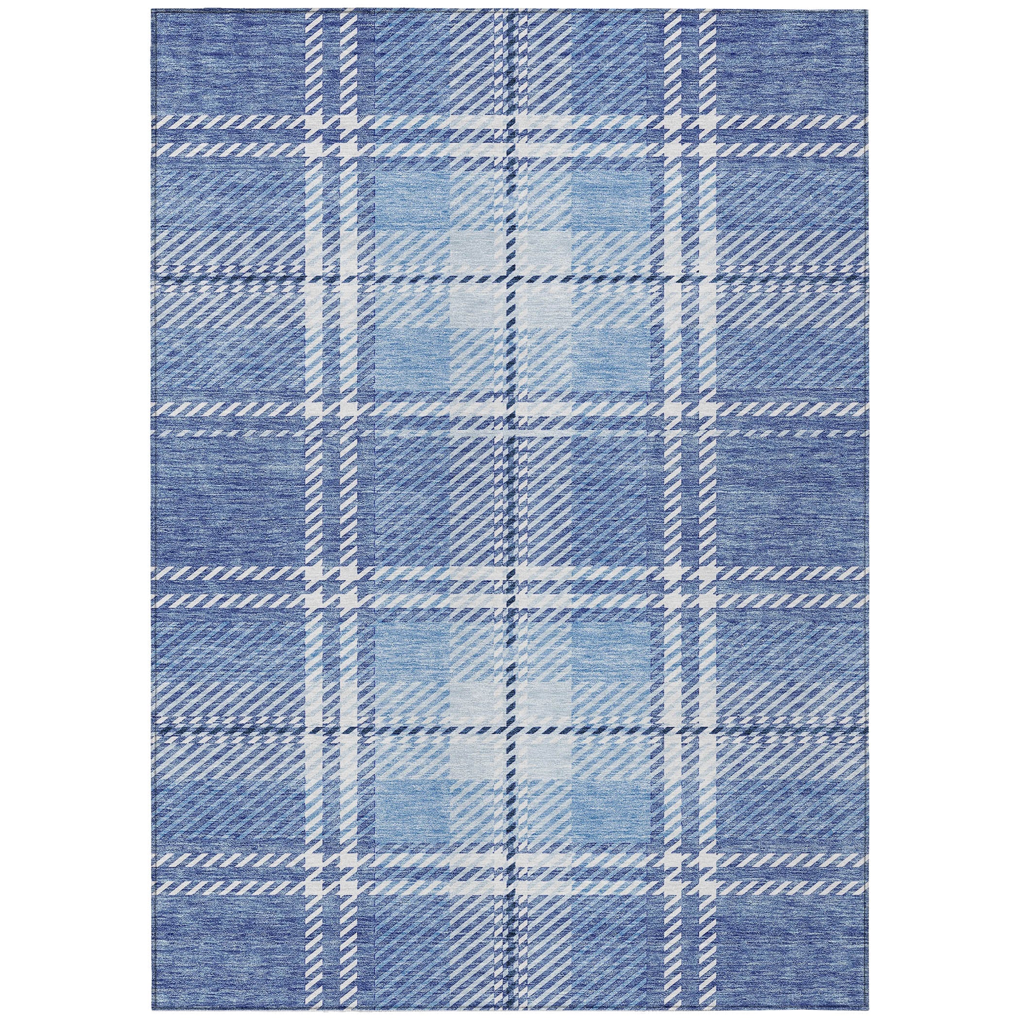 Elevate your living space with the Chantille ACN935 Denim area rug. This stylish piece blends horizontal and vertical lines to create a timeless plaid pattern, perfect for enhancing transitional decor. Crafted with versatility in mind, this rug is UV stabilized, allowing you to place it in any location without worry. Its ultra-thin profile makes it a practical choice for various rooms in your home.