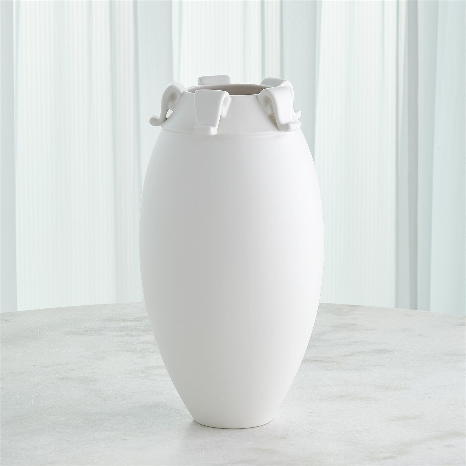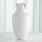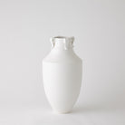 This Collection has been named Delphi, considered by the ancient Greeks to be the center of the world. The earliest vessel forms were found in Cycladic and Egyptian examples 3000 years ago. The Delphi collection is Thomas's version of this ancient form complete with delicate curved handles and a matte white finish.